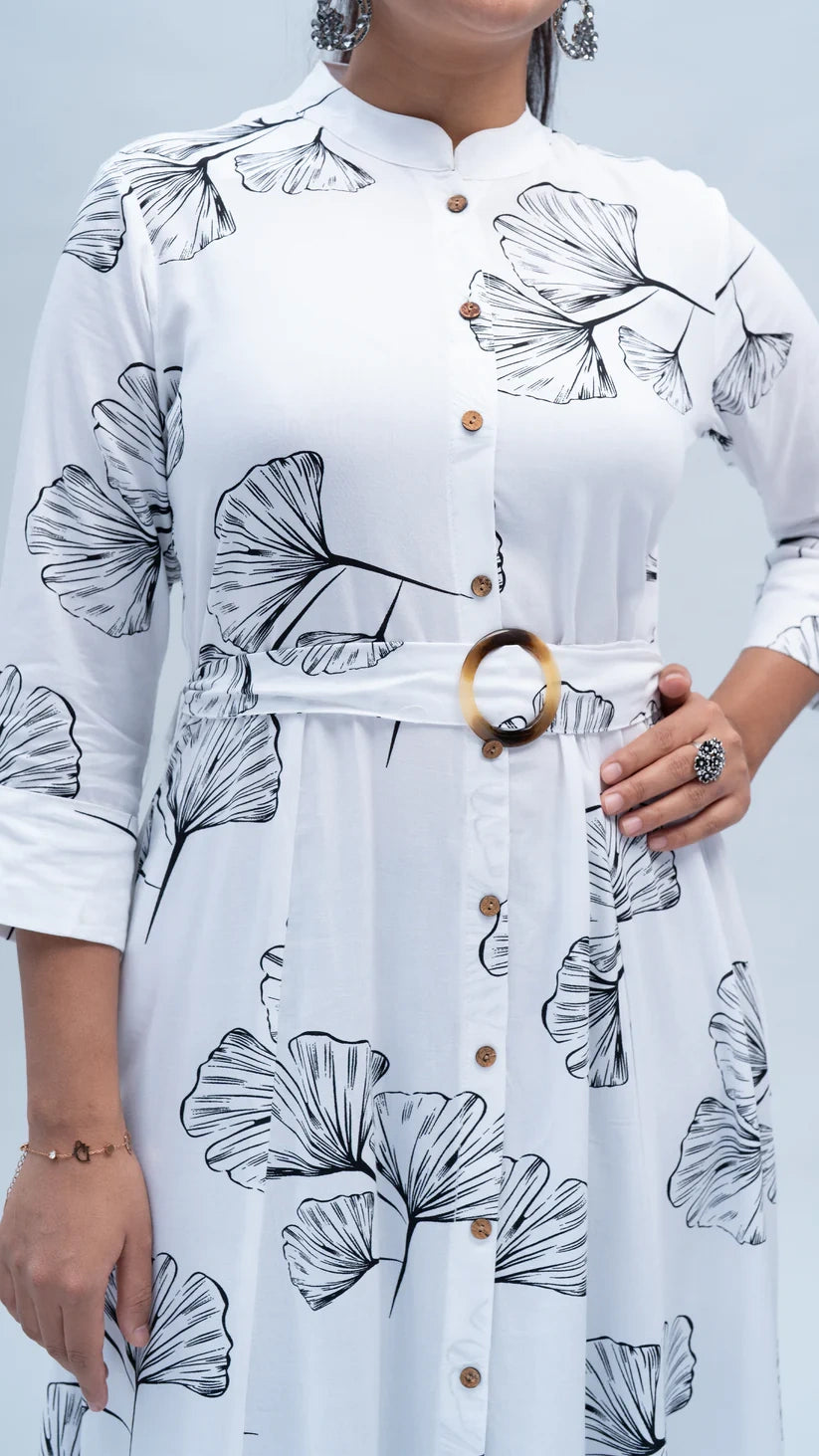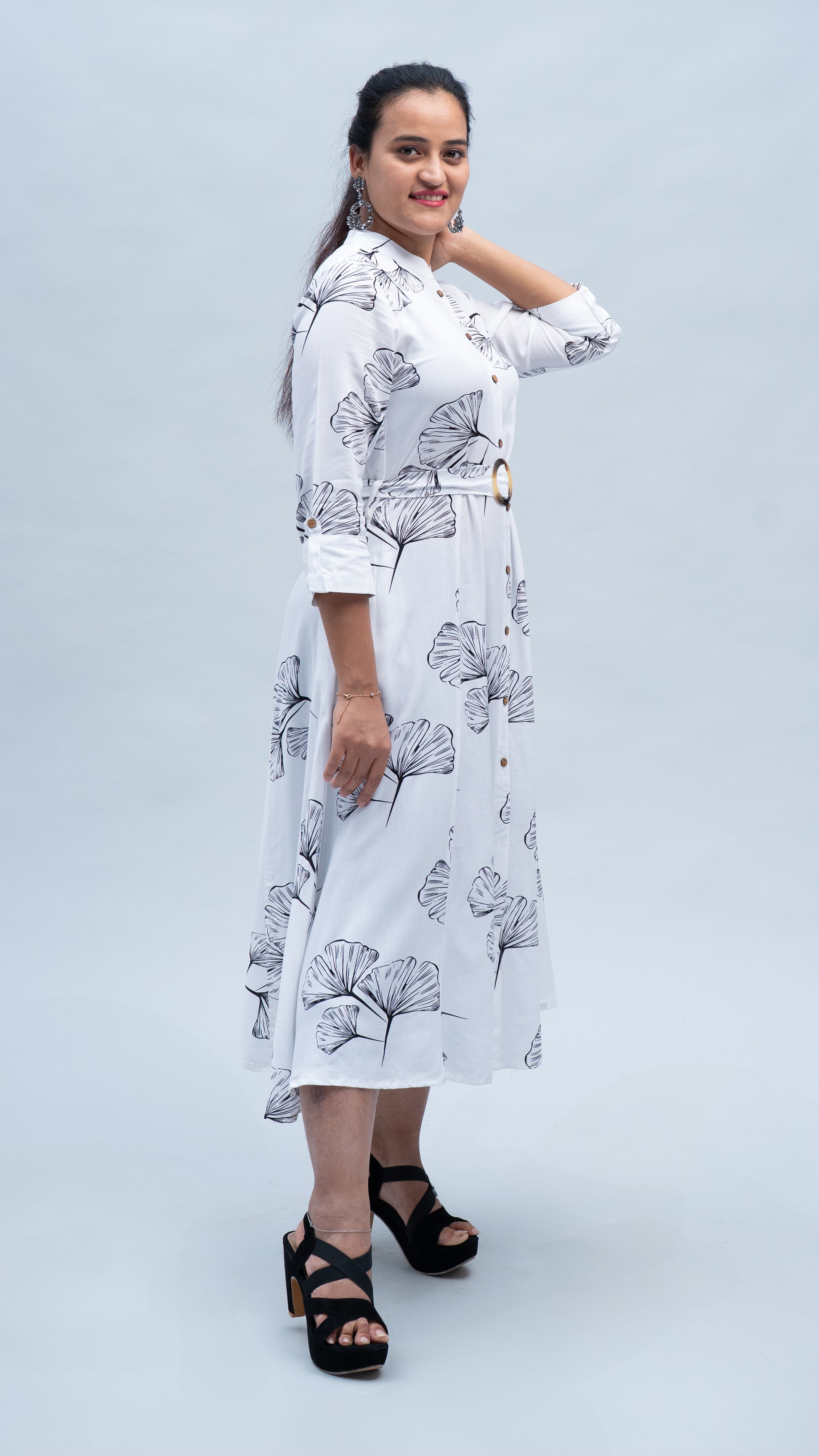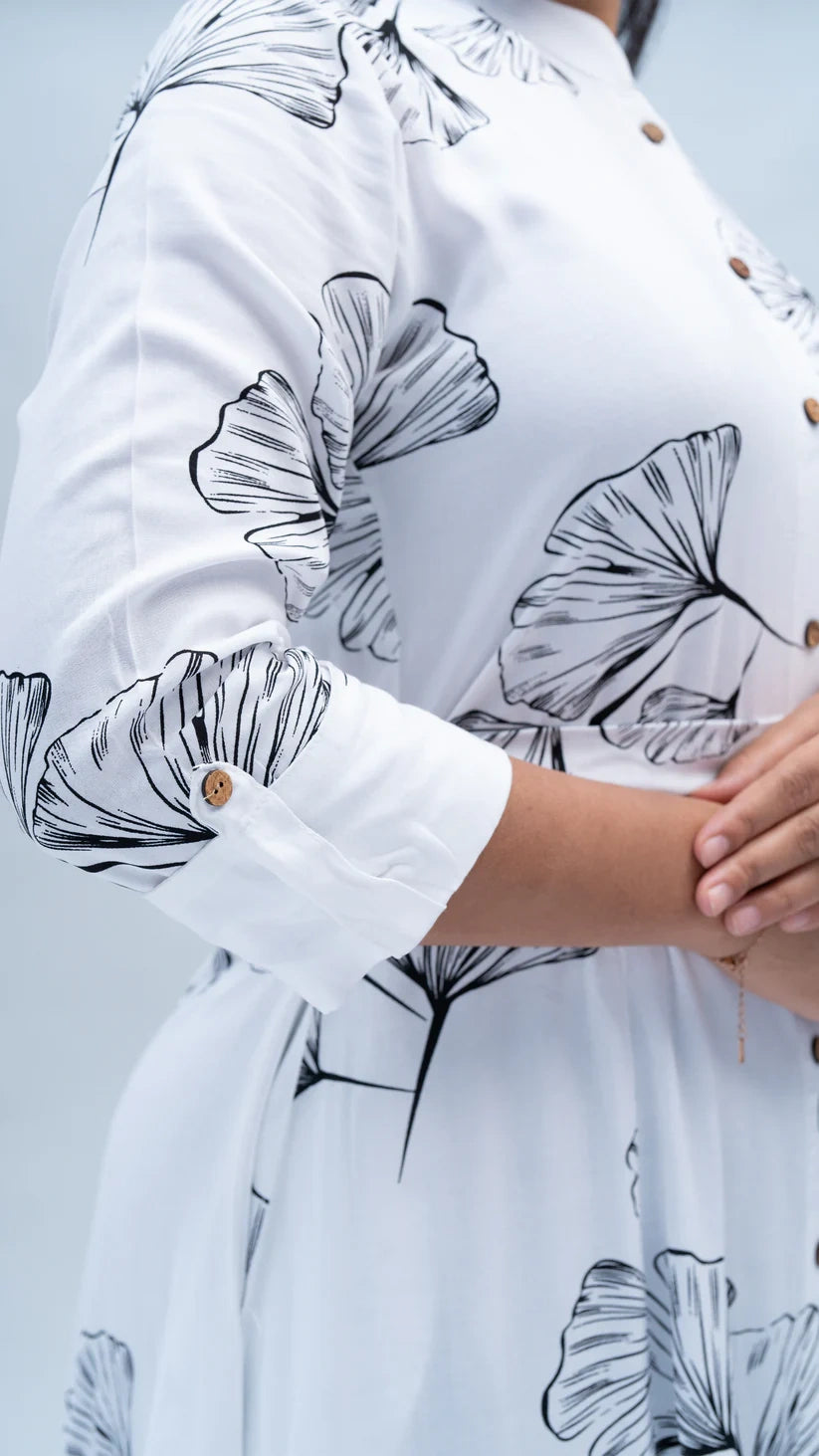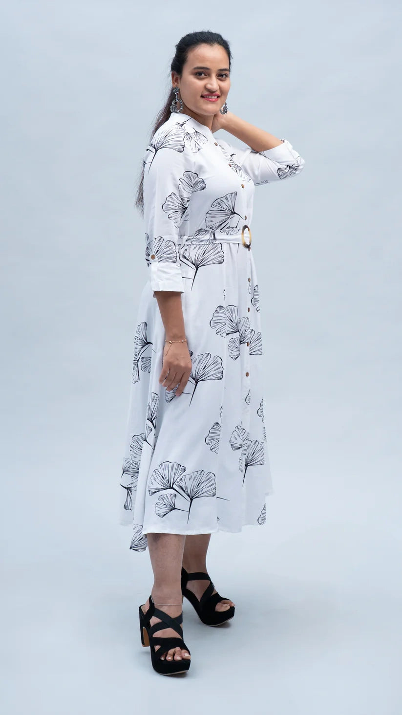 Add a touch of nature-inspired style to your wardrobe with this Leaf Print Short Midi Dress. Featuring a beautiful leaf pattern, this dress combines elegance and comfort in a flattering, midi-length design. Made from lightweight, breathable fabric, it’s perfect for warm weather or layering with your favorite accessories. Whether you're heading to brunch or a casual outing, this dress brings a fresh and stylish vibe to your day