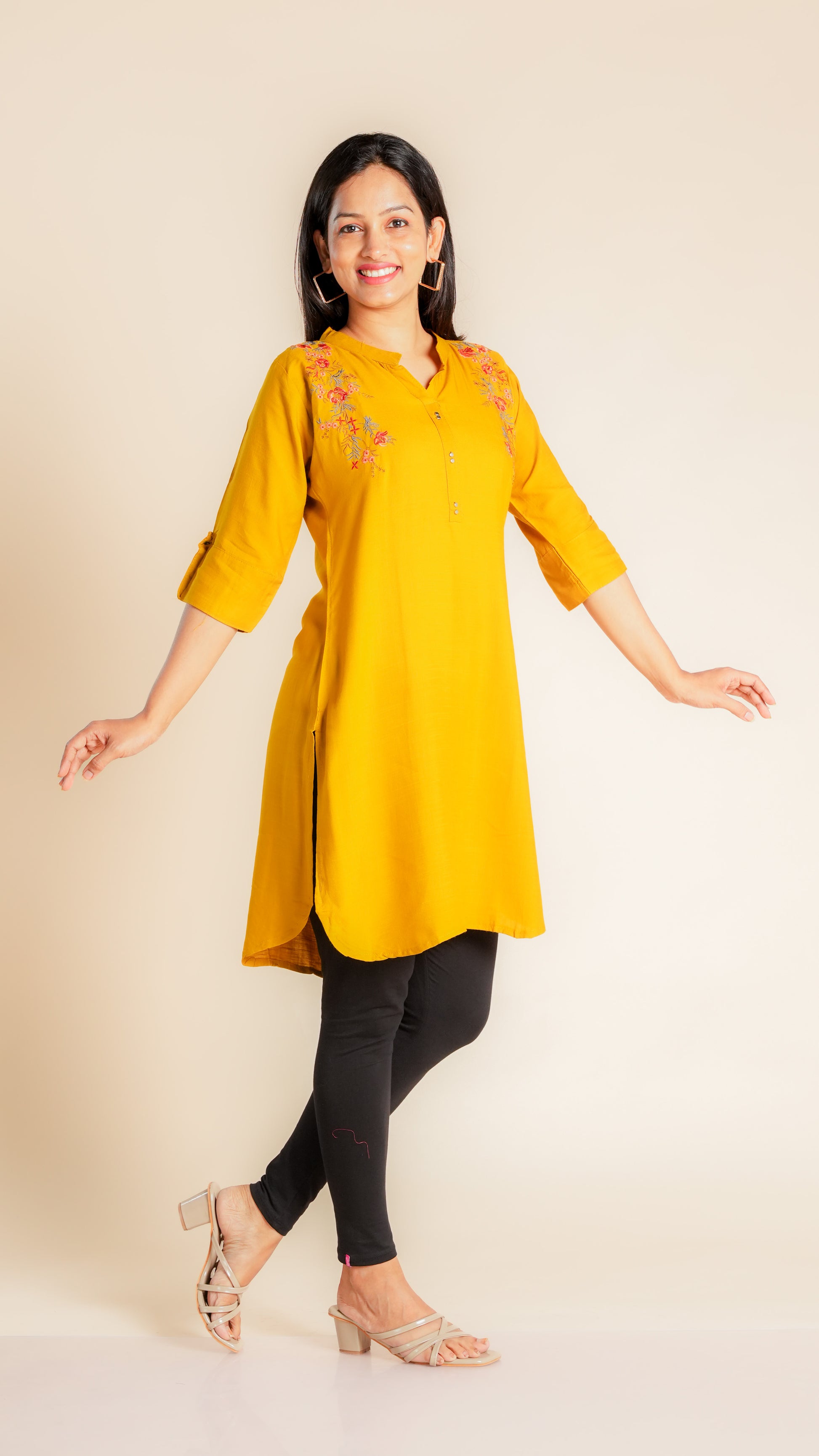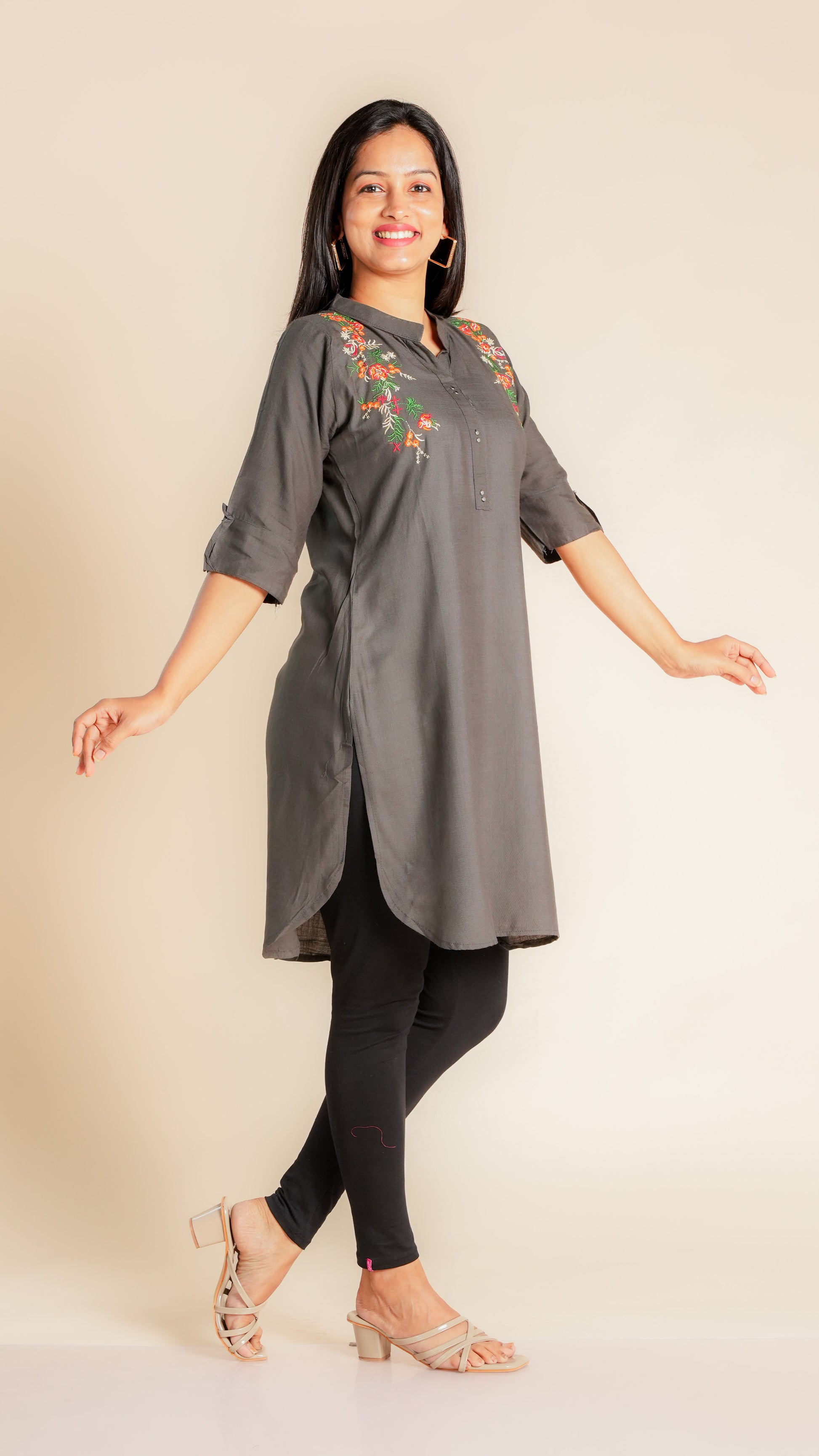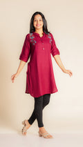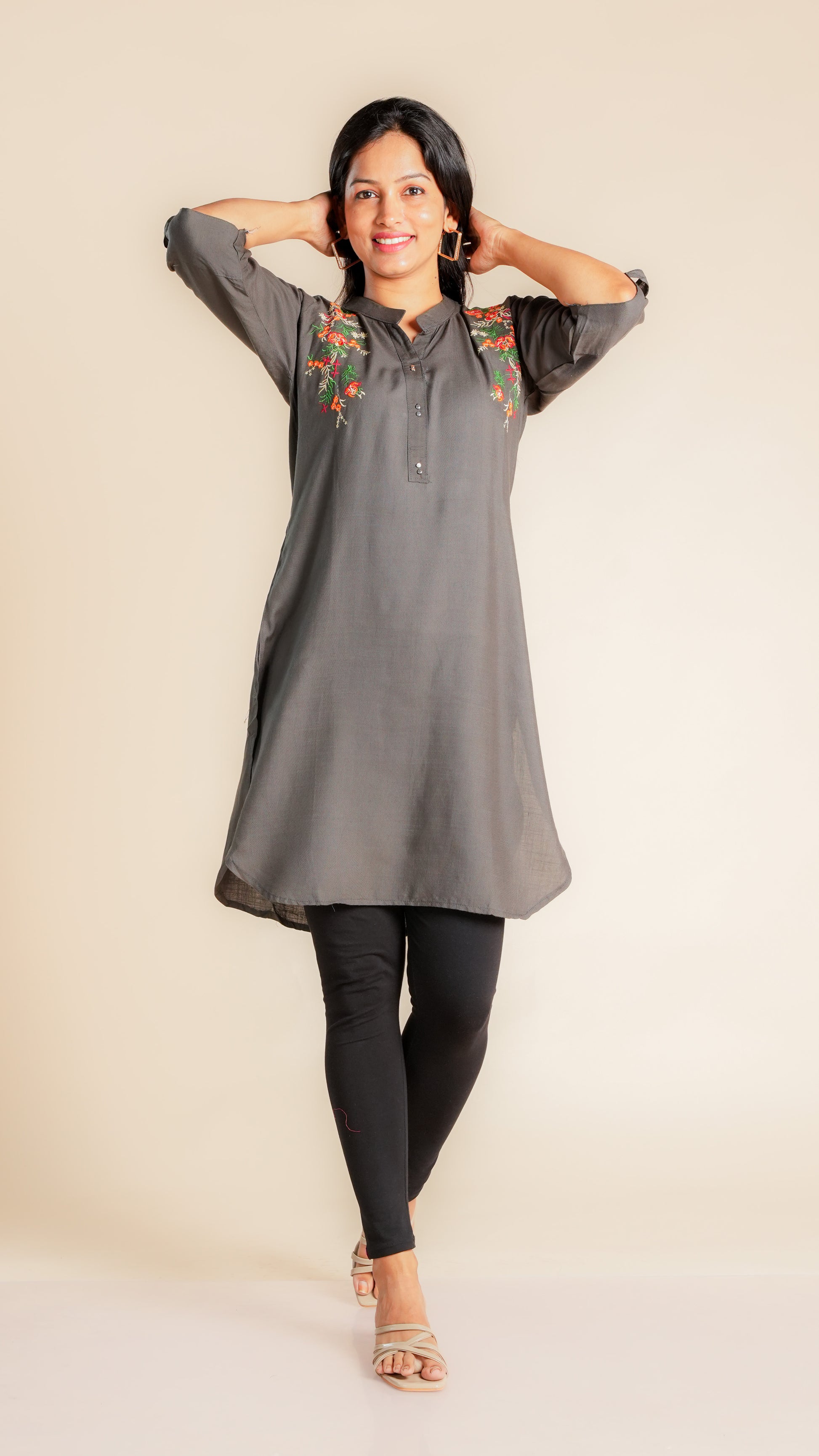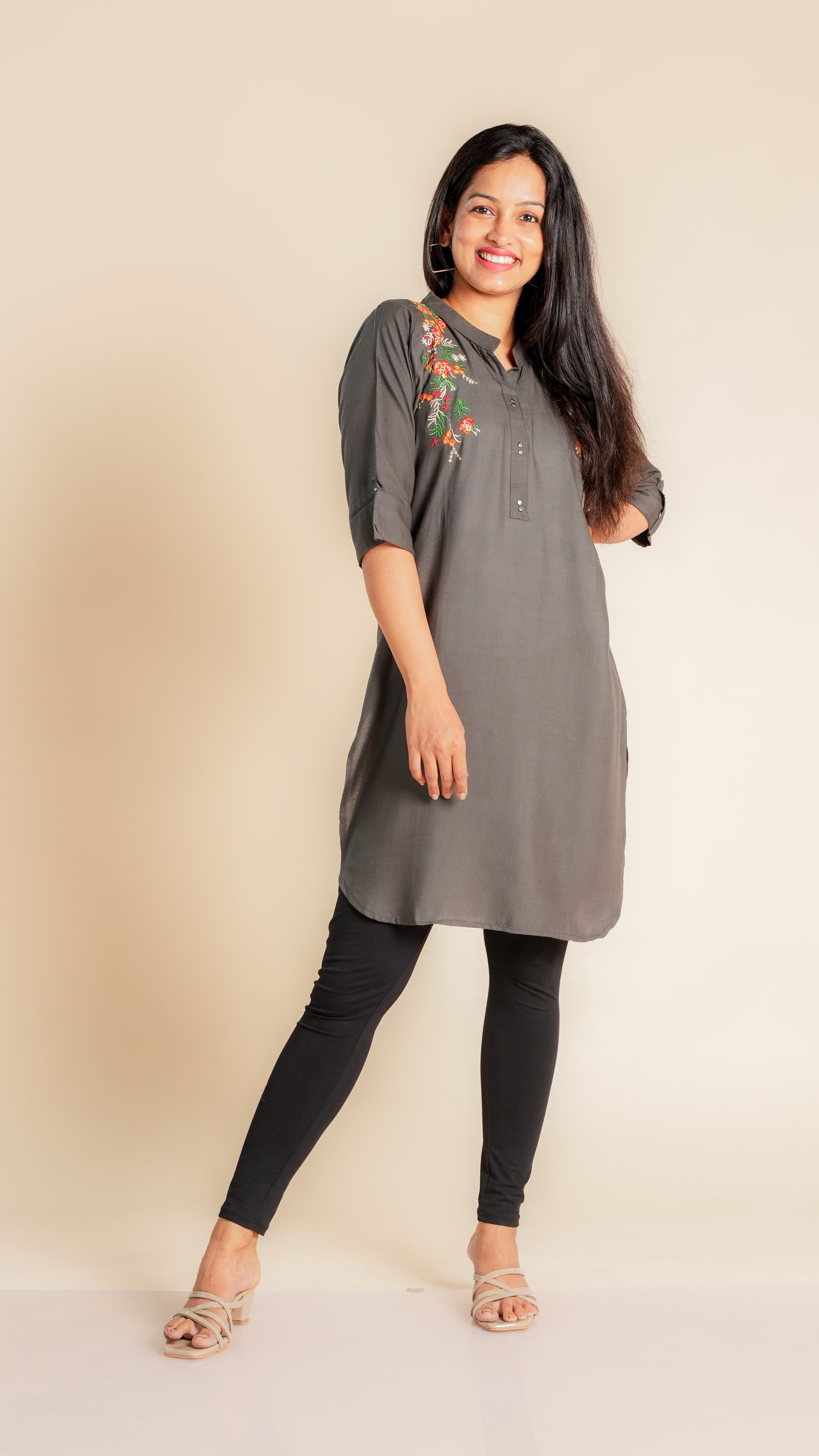 This Fieraa Kurti combines traditional design with modern style. Made with high-quality materials and intricate embroidery, this piece is perfect for adding a touch of elegance to any outfit. Its versatile design allows for easy pairing with any bottom, making it a must-have addition to your wardrobe. Embrace the beauty and sophistication of Pathani culture with this stunning kurti.