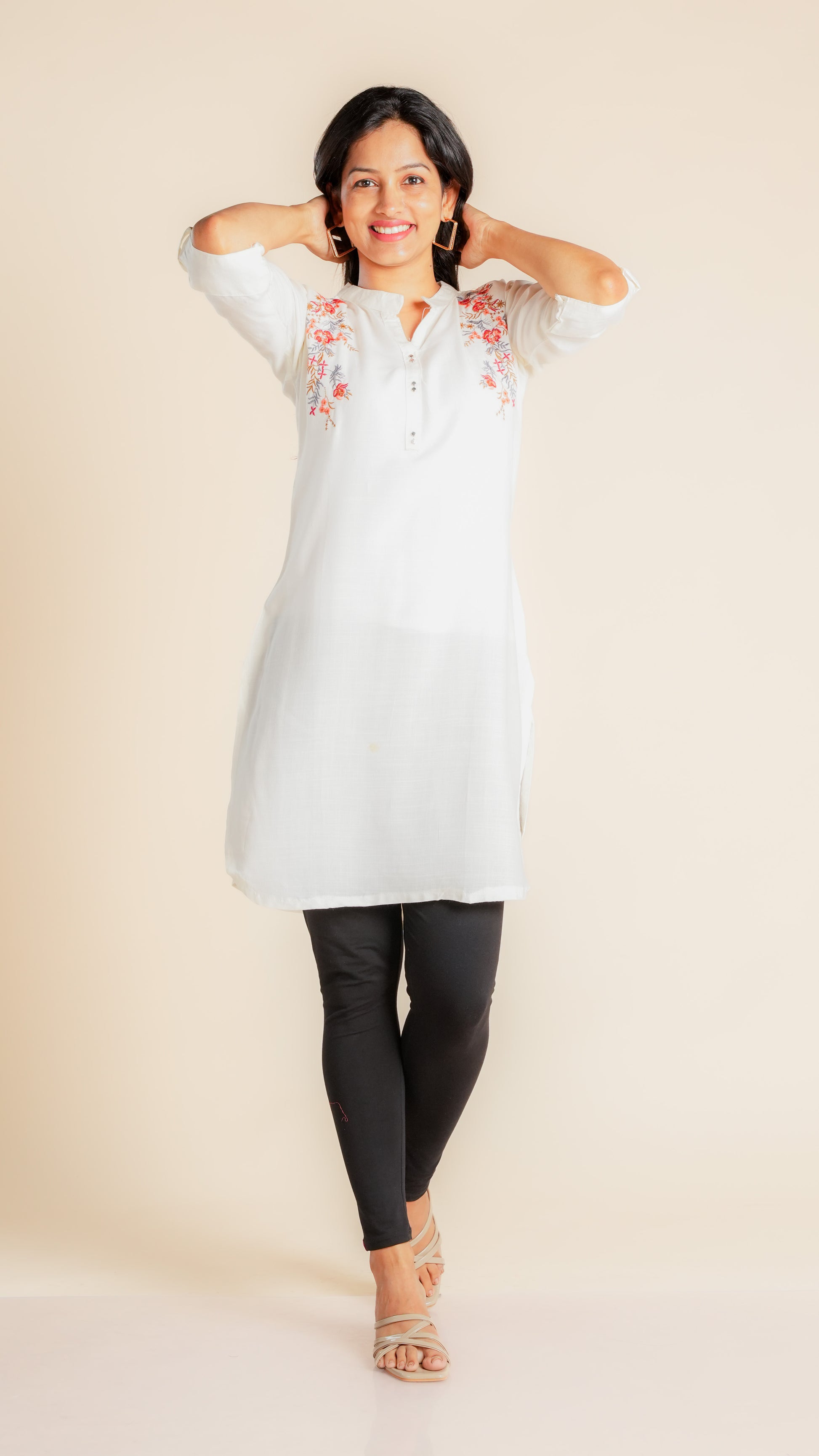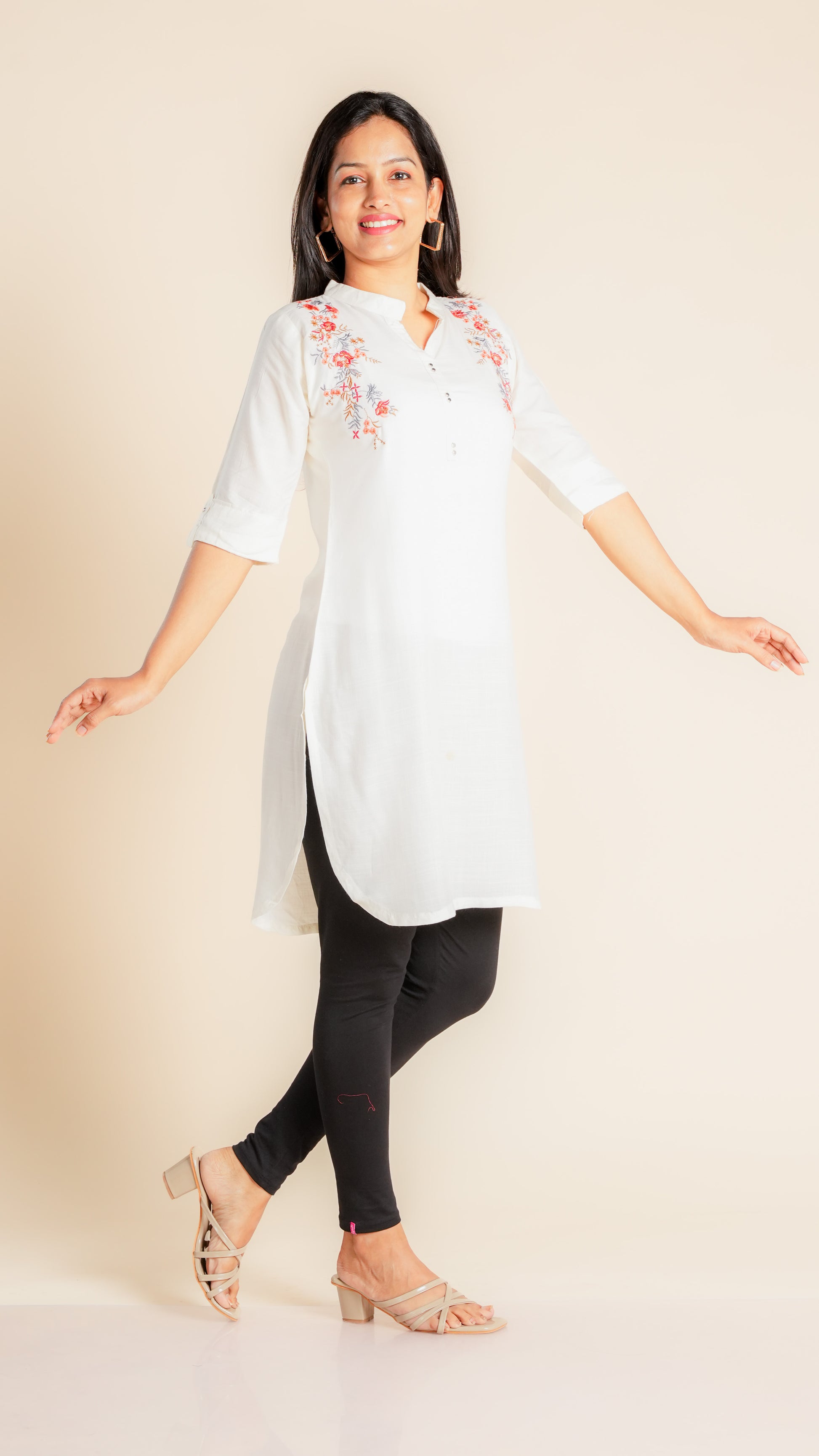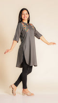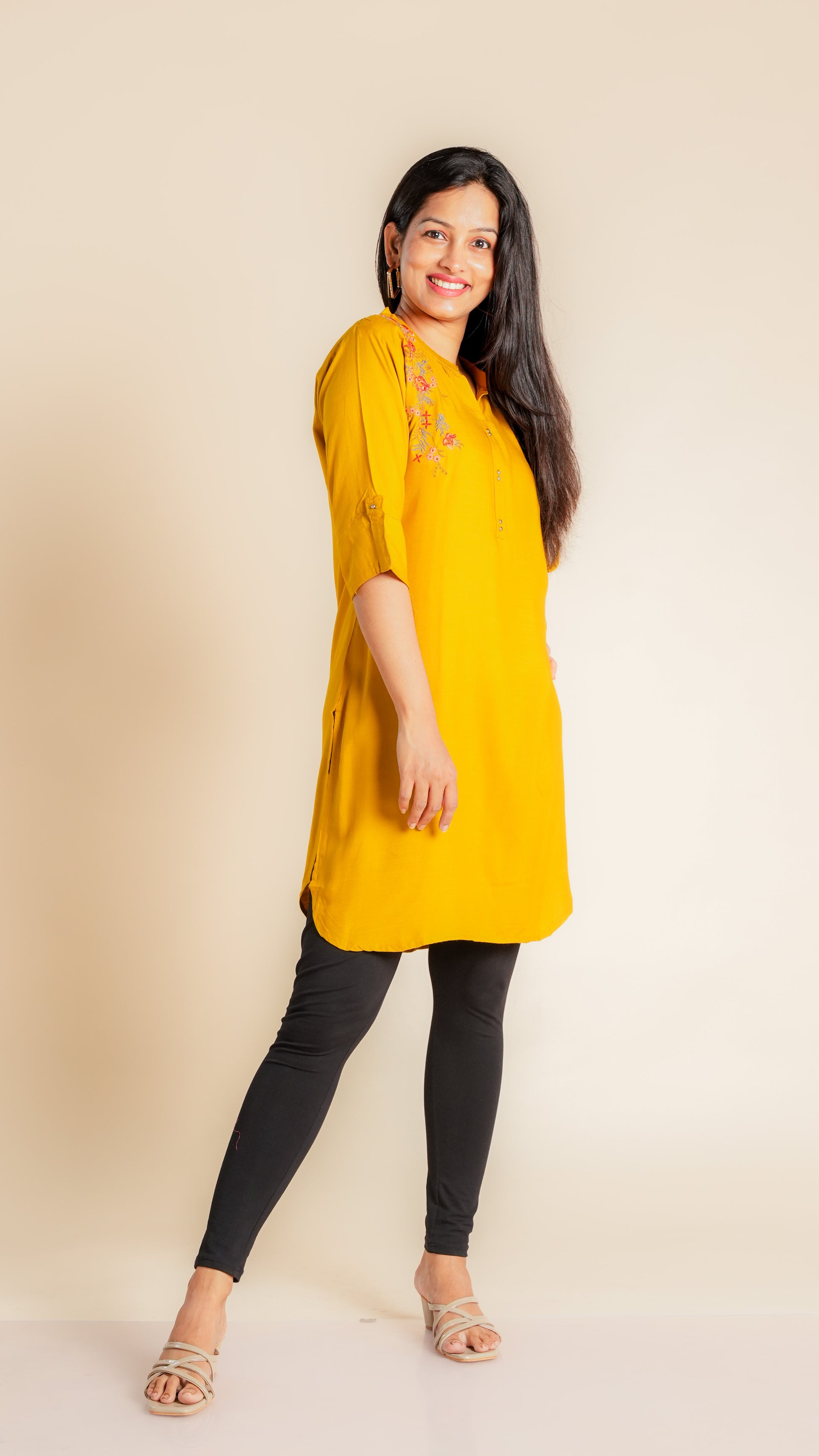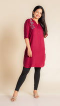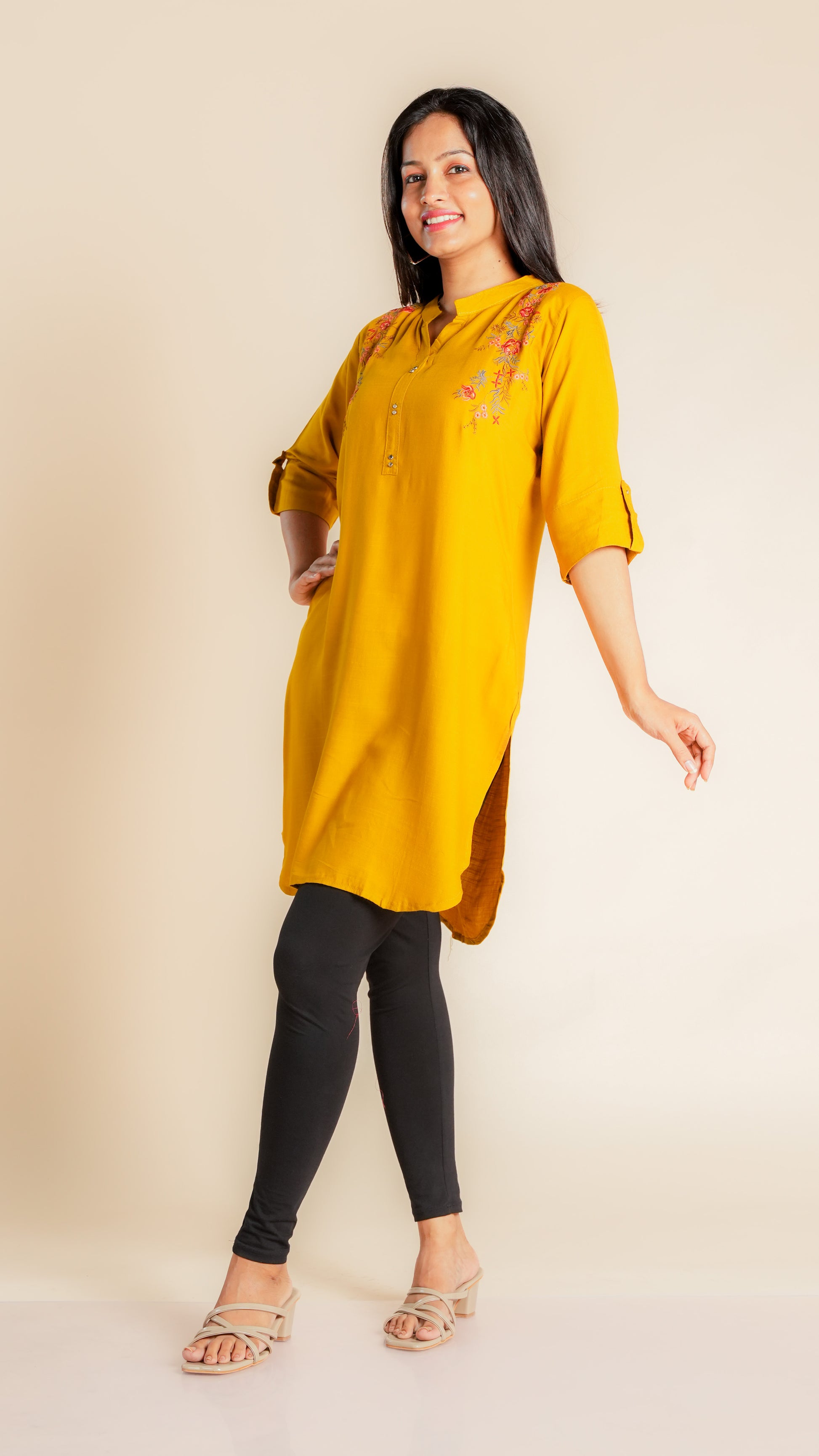 This Fieraa Kurti combines traditional design with modern style. Made with high-quality materials and intricate embroidery, this piece is perfect for adding a touch of elegance to any outfit. Its versatile design allows for easy pairing with any bottom, making it a must-have addition to your wardrobe. Embrace the beauty and sophistication of Pathani culture with this stunning kurti.