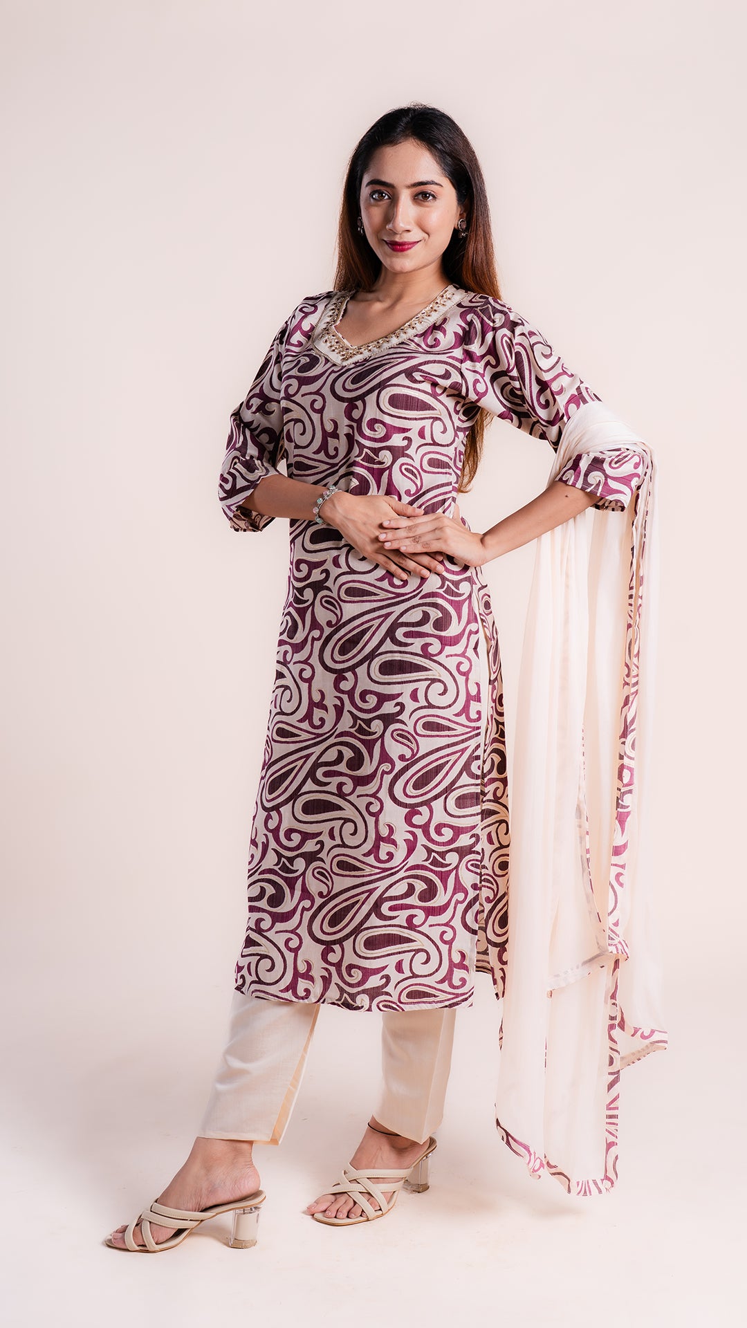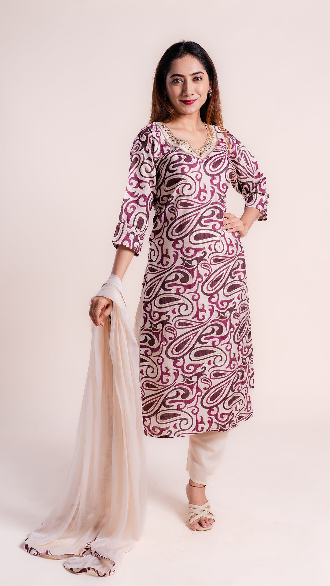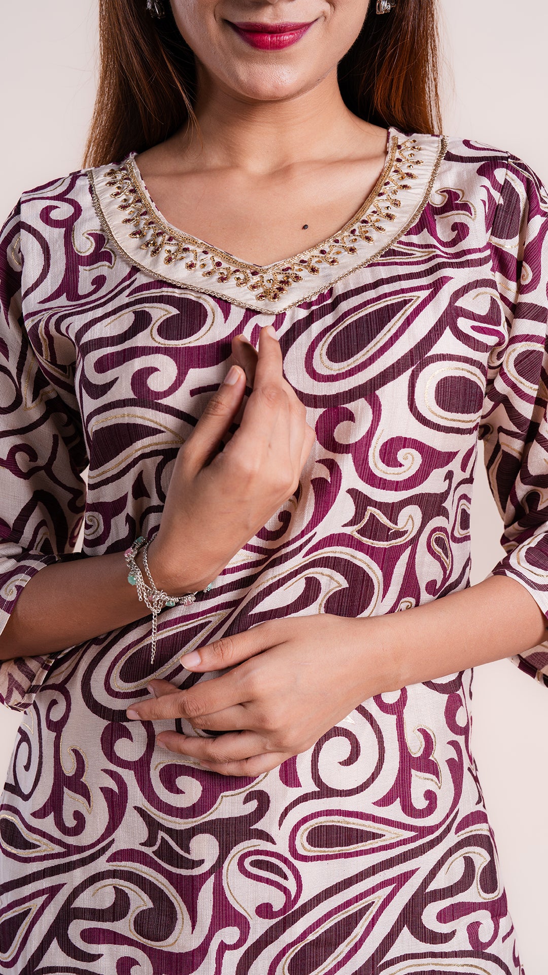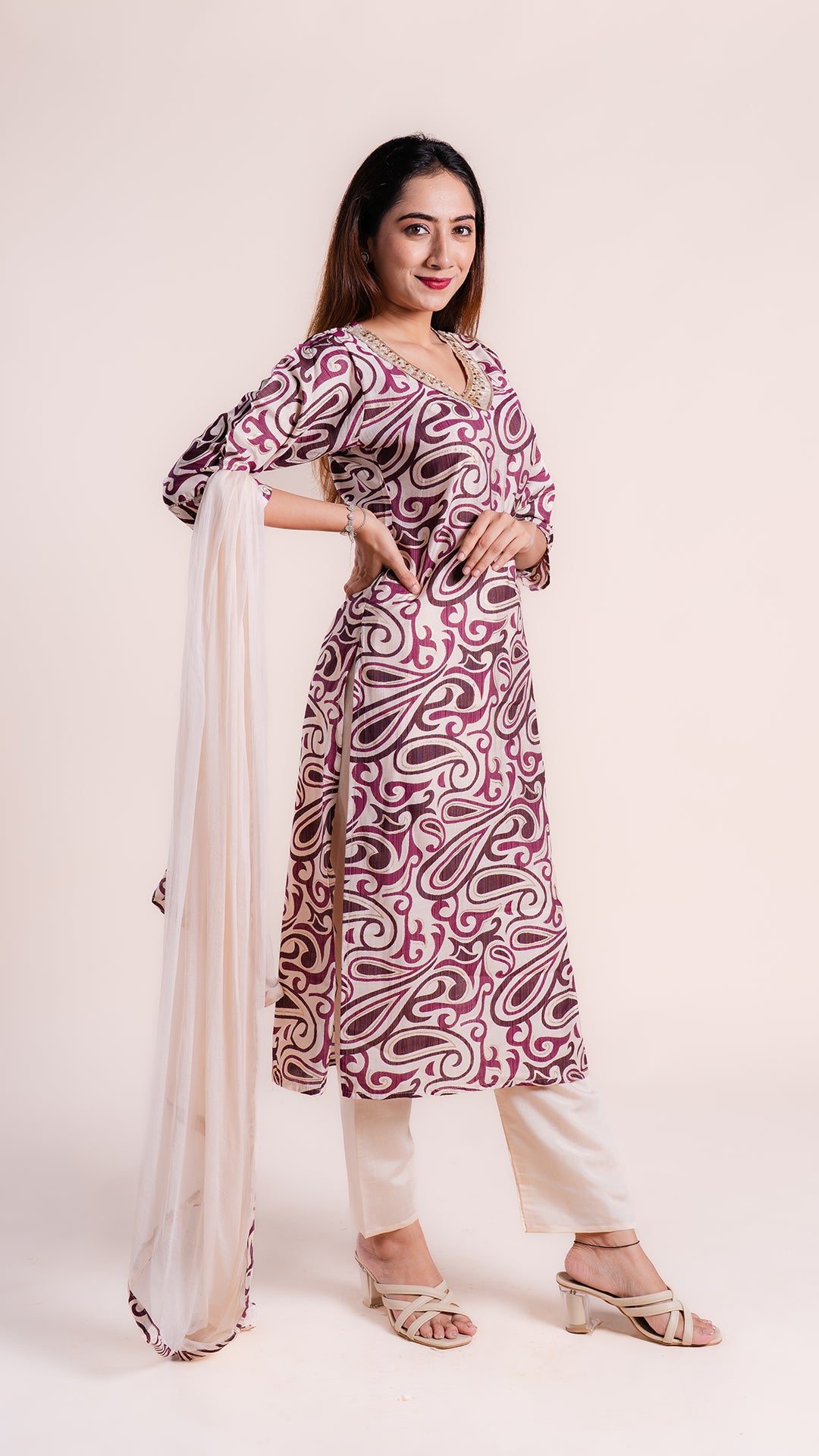 The Print Parade kurti combines traditional charm with contemporary style, featuring intricate prints that add a vibrant touch to your wardrobe. Crafted from breathable fabric, it ensures comfort throughout the day, making it ideal for both casual outings and festive occasions.Perfectly paired with leggings or palazzos, this kurti is a versatile addition that elevates your ethnic collection with expert craftsmanship and timeless appeal.