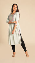 Elevate your style with our Rayon Nyra Cut Kurti featuring intricate sequins and embroidery on the neckline. Made of high-quality rayon material, this kurti offers comfort and elegance for any occasion. Perfect for a sophisticated look with a touch of glamour.