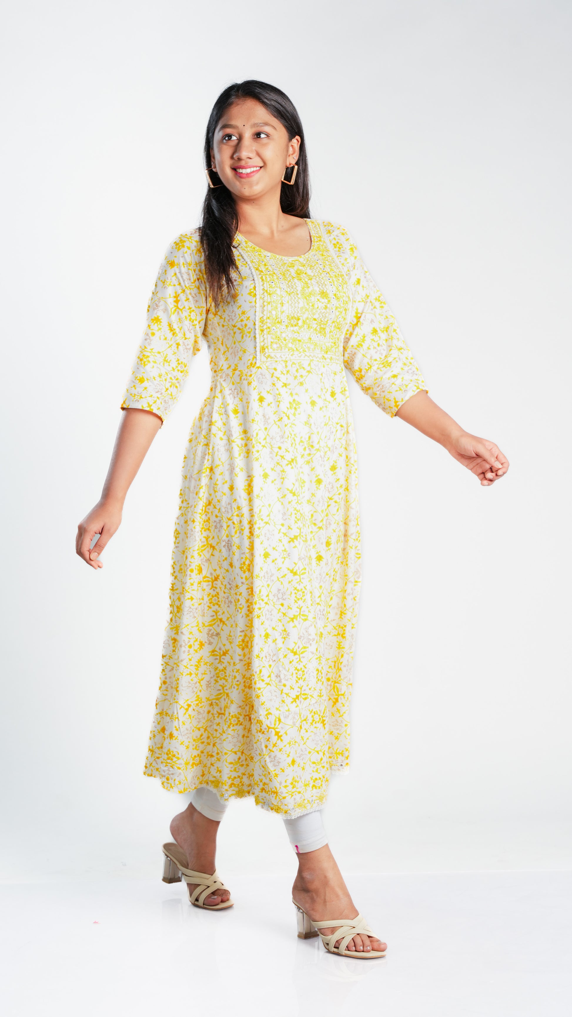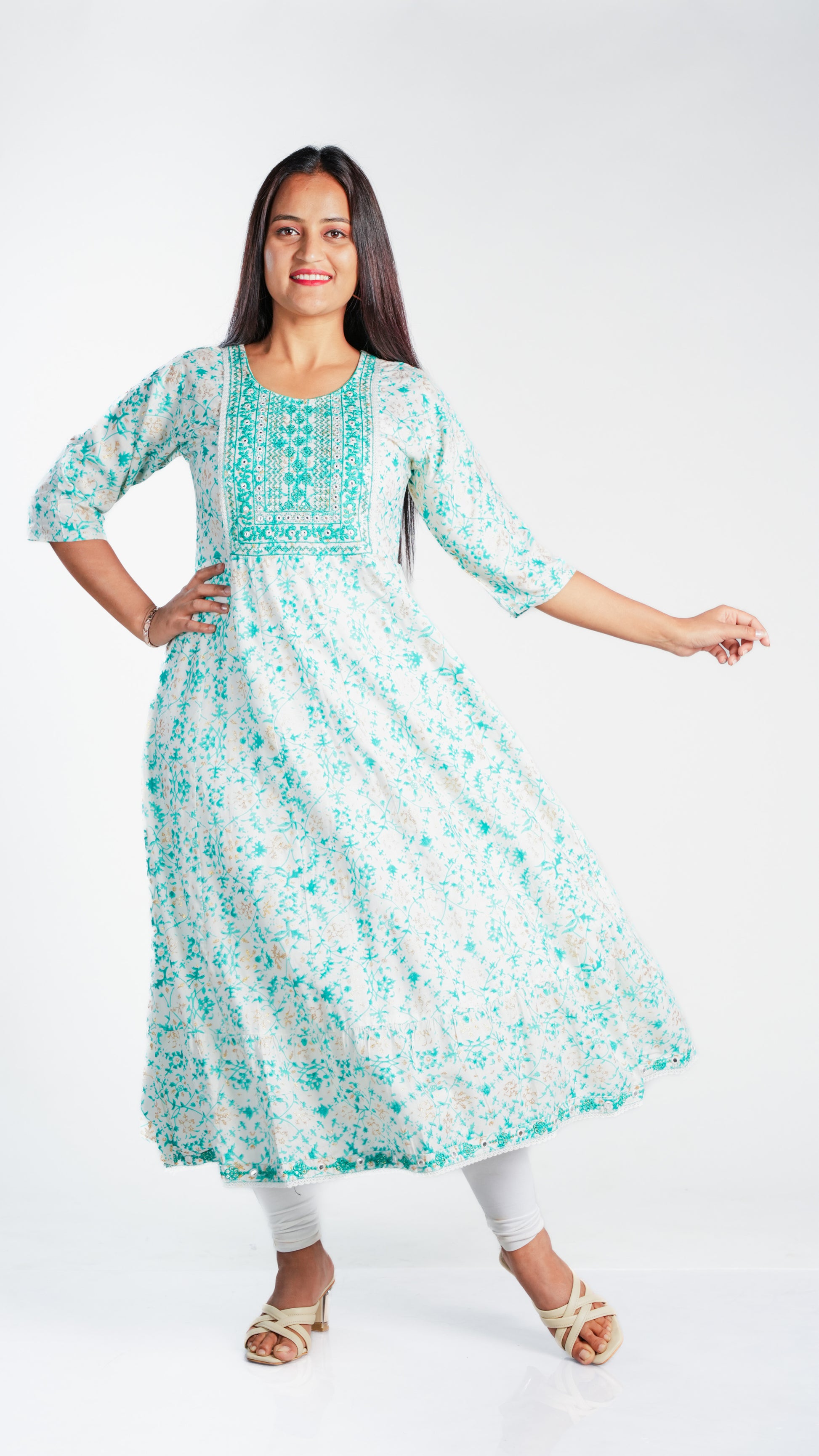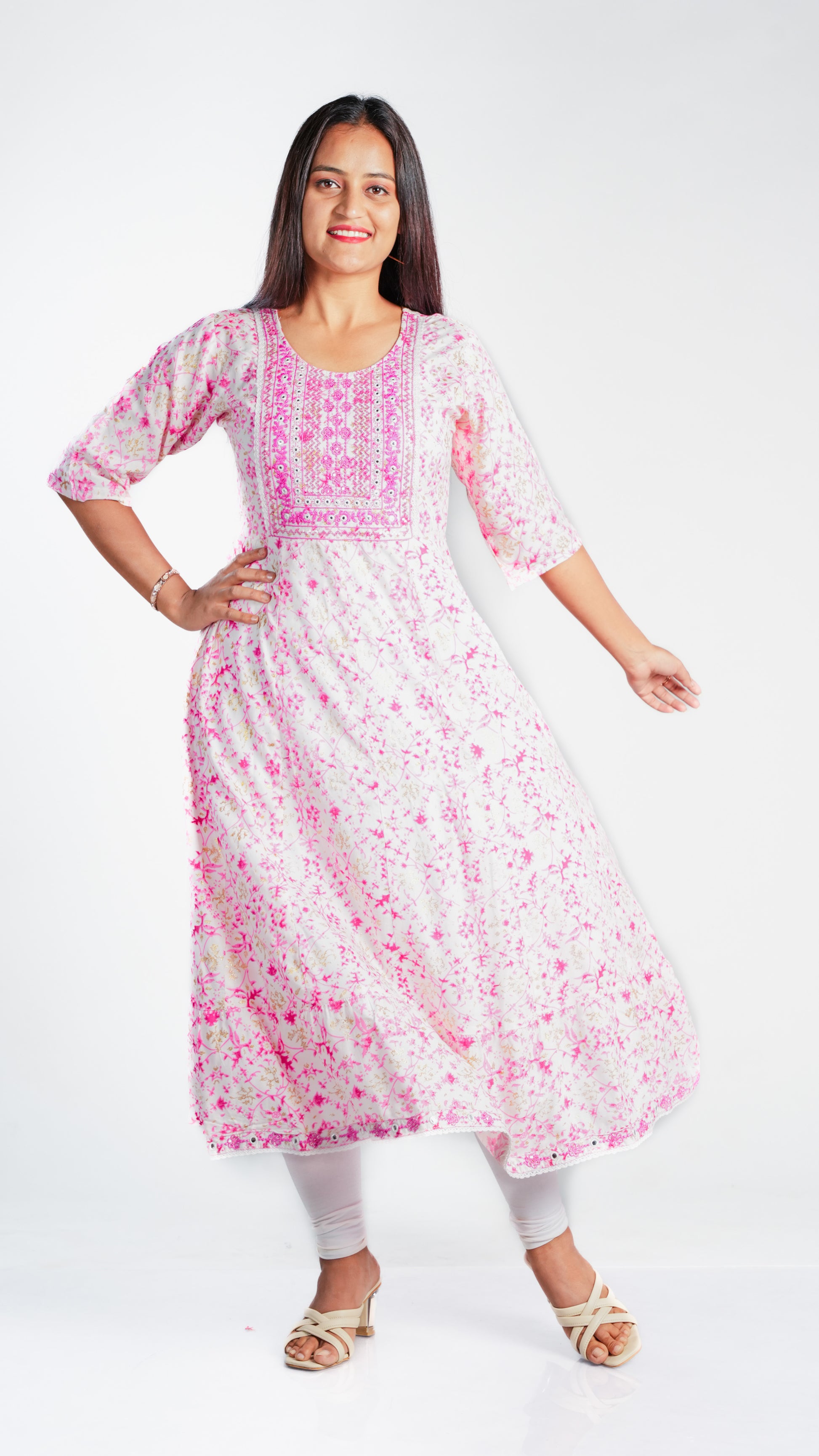 This Rayon Printed Frock offers a stylish and comfortable option for any occasion. Made with high-quality rayon fabric, it provides a soft and lightweight feel for all-day wear. The vibrant print adds a touch of personality, making it a must-have in any wardrobe. Upgrade your wardrobe with this versatile and fashionable frok.