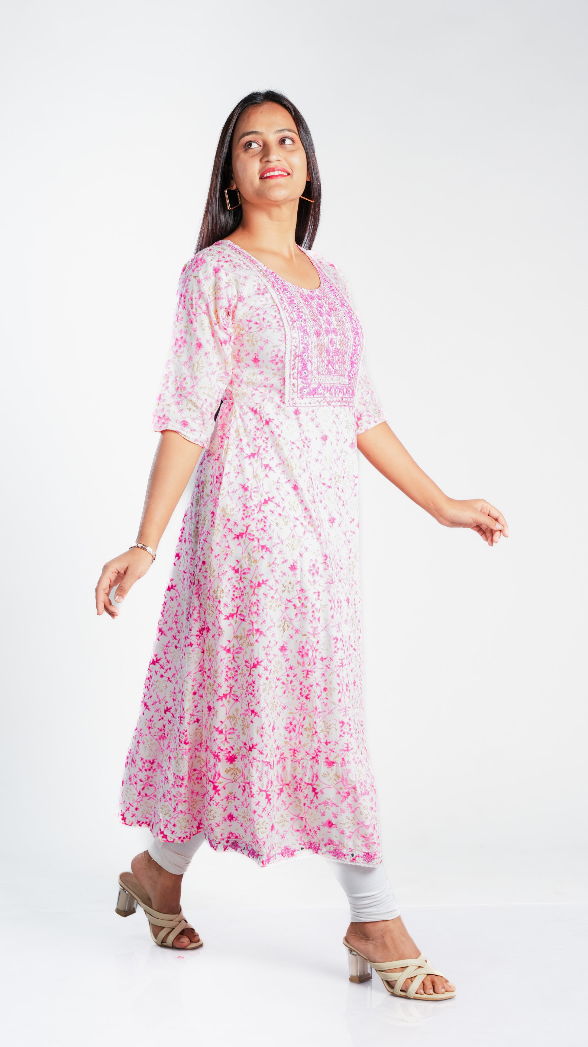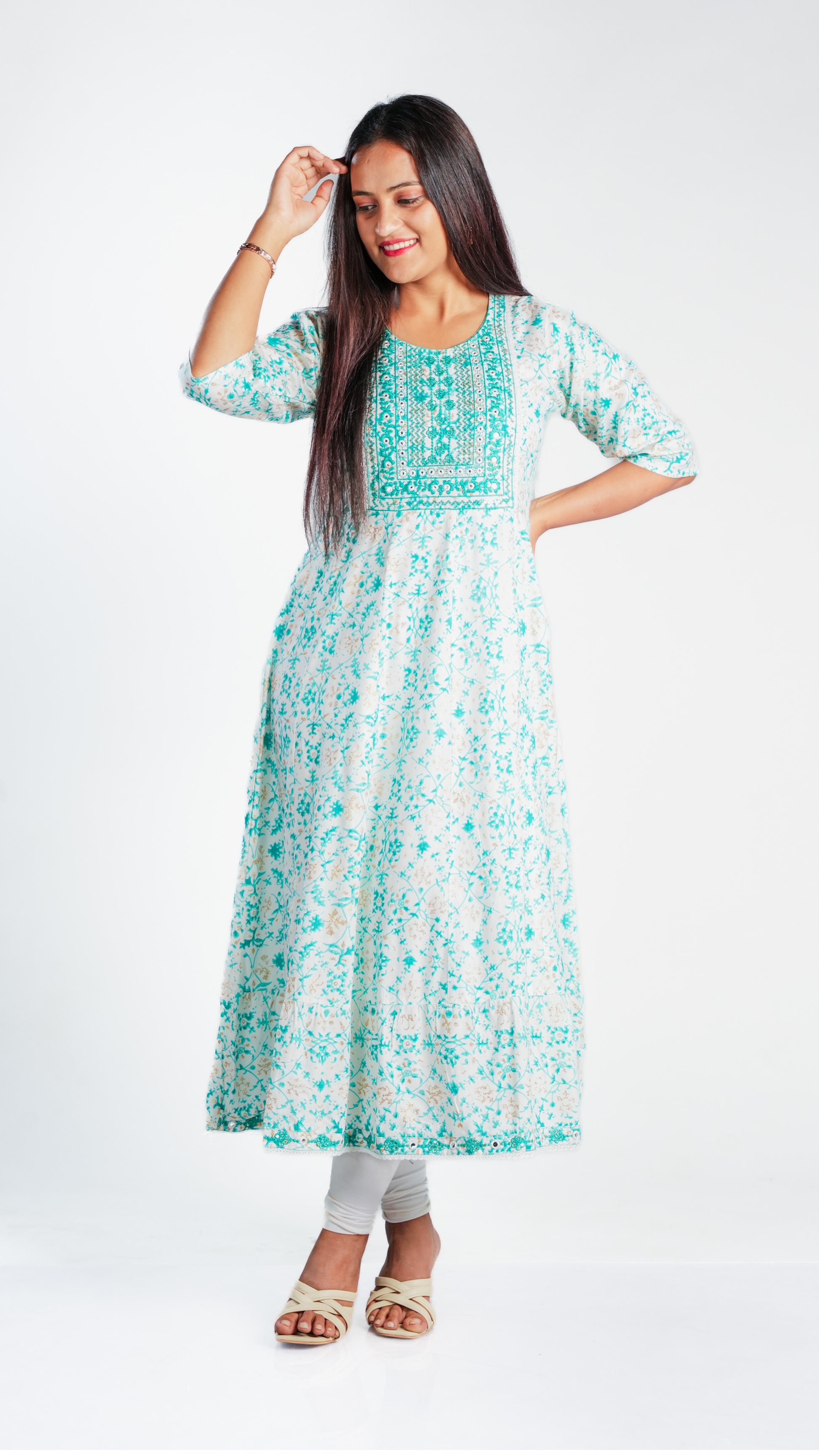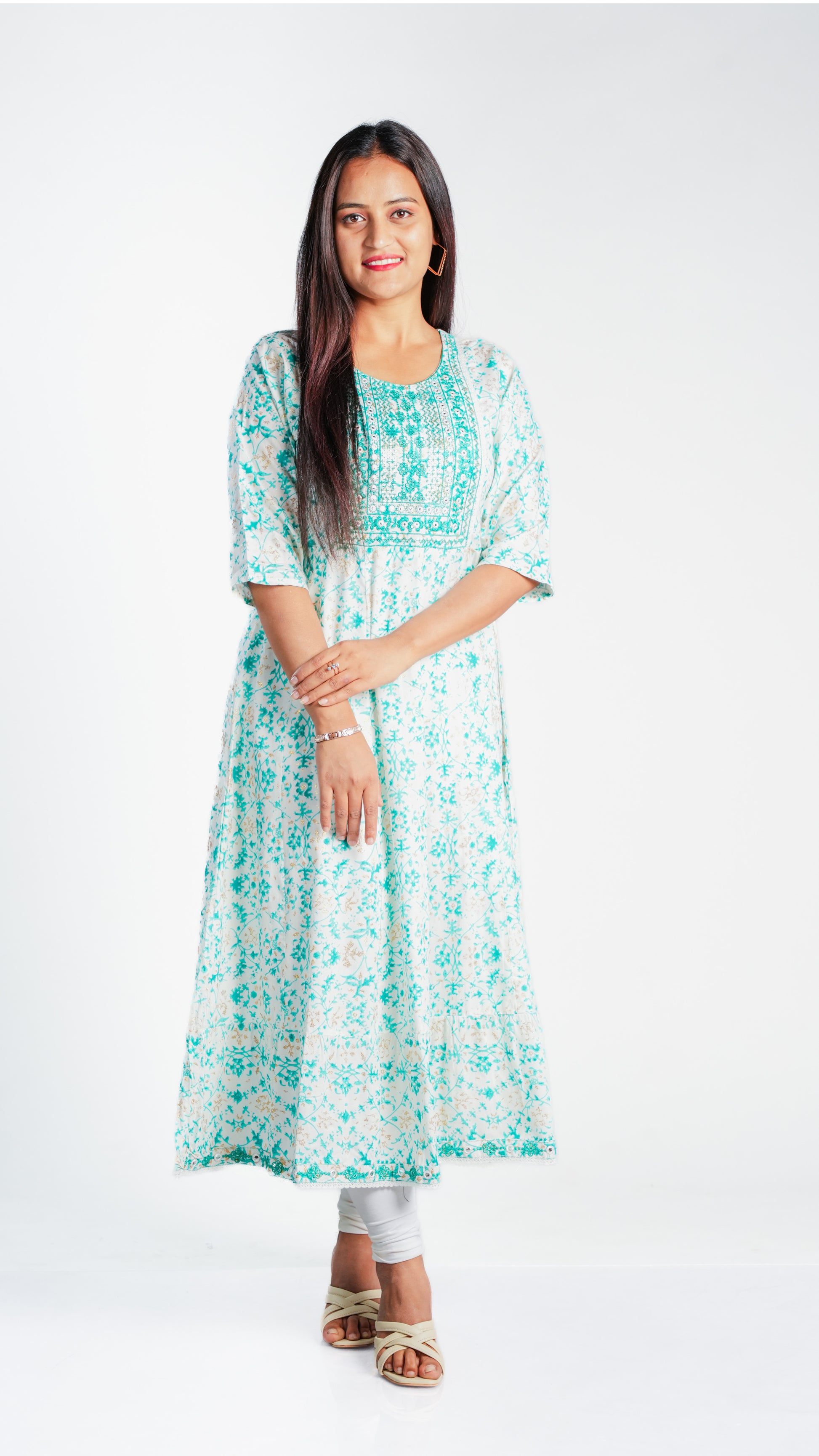 This Rayon Printed Frock offers a stylish and comfortable option for any occasion. Made with high-quality rayon fabric, it provides a soft and lightweight feel for all-day wear. The vibrant print adds a touch of personality, making it a must-have in any wardrobe. Upgrade your wardrobe with this versatile and fashionable frok.