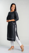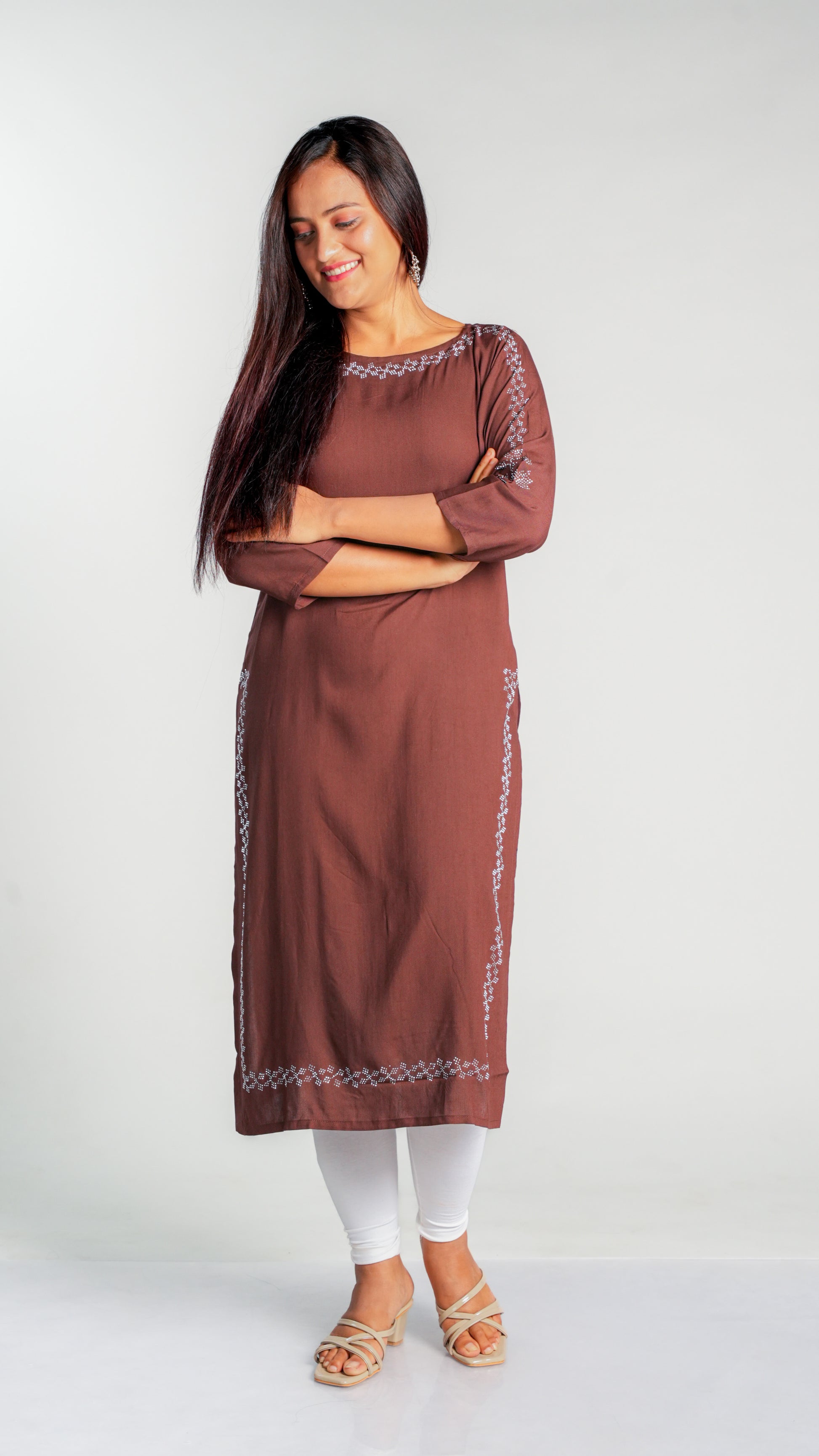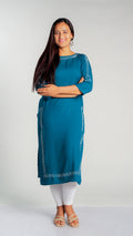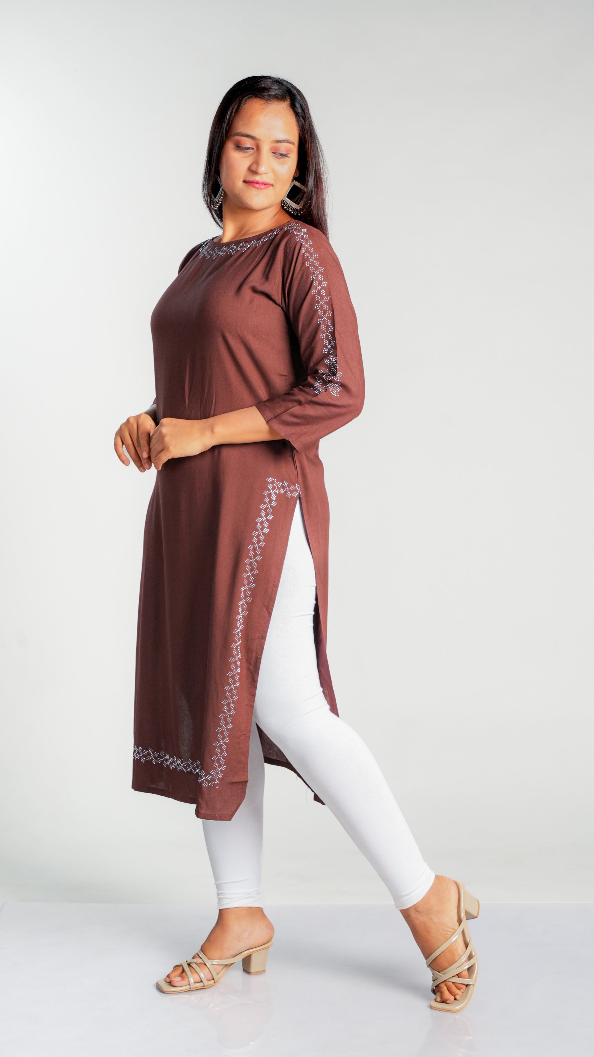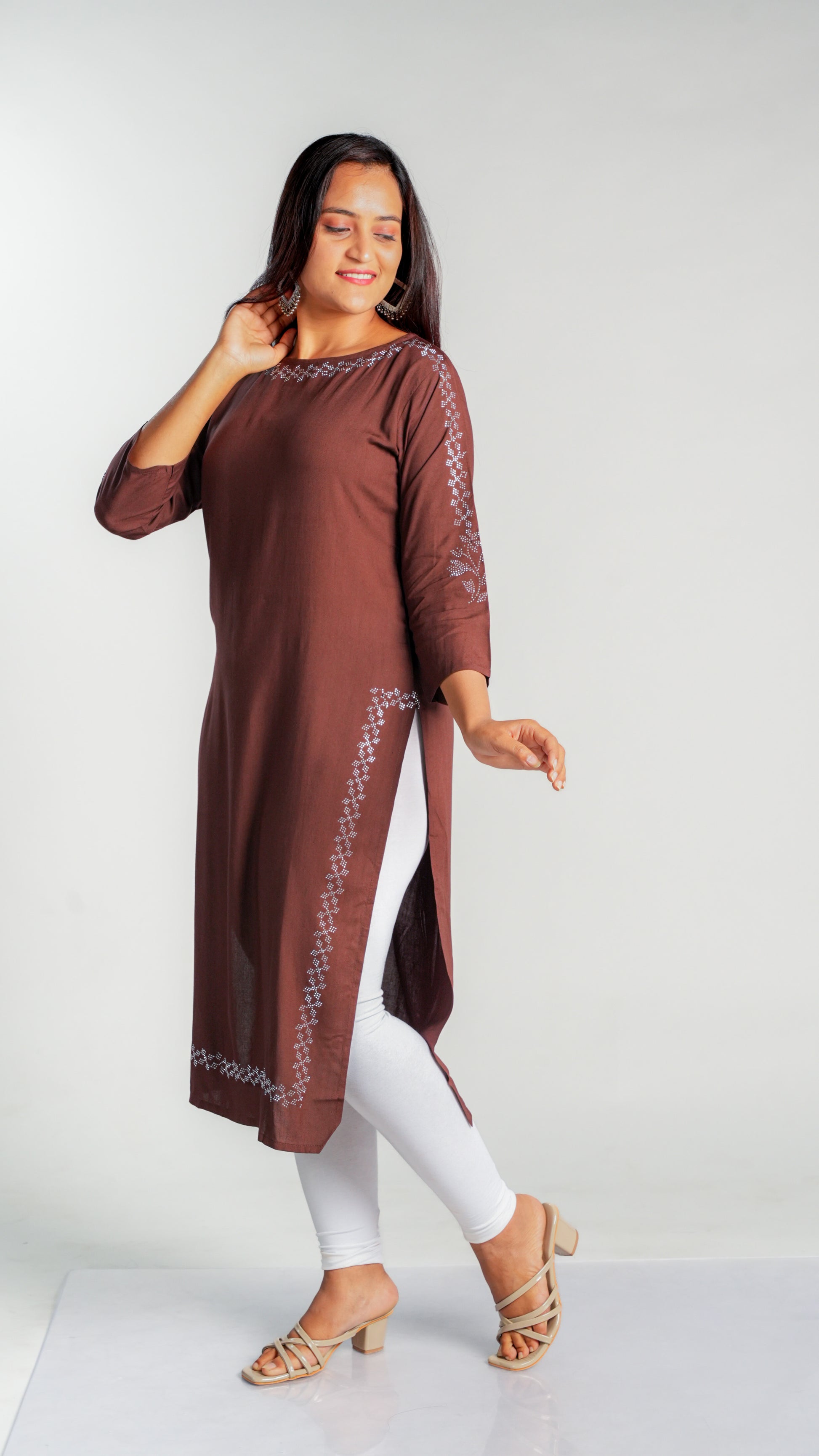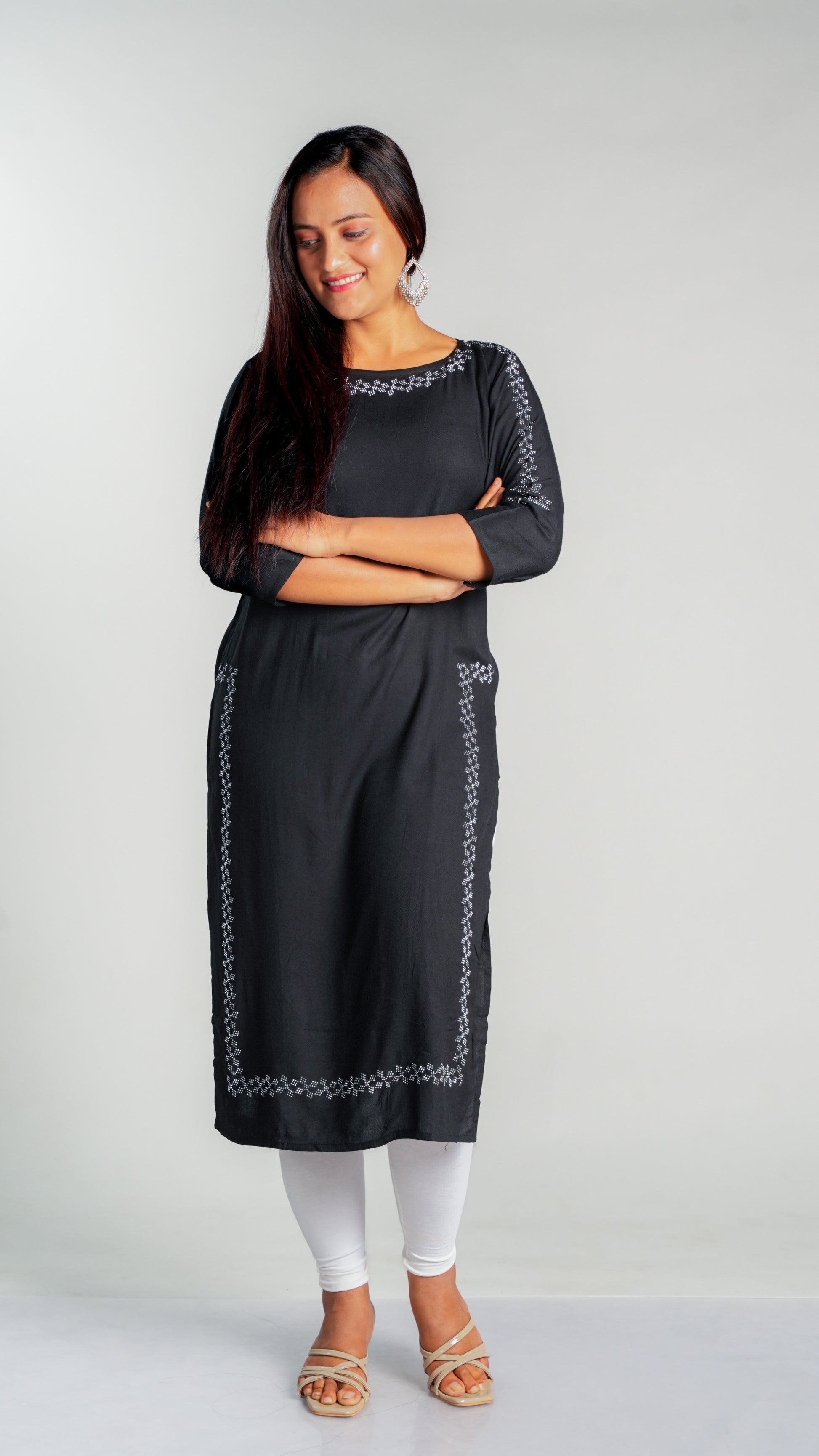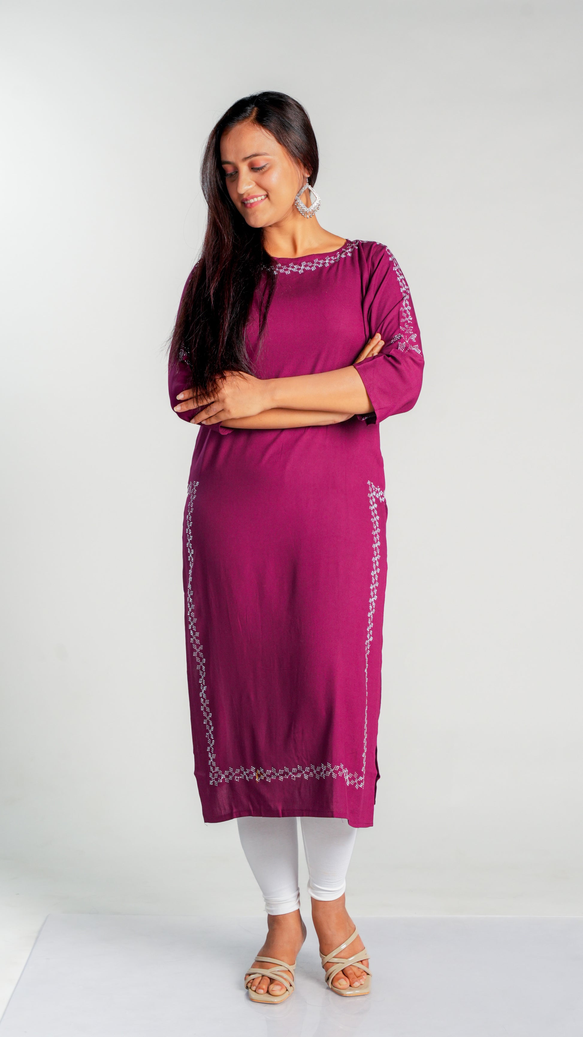 Made with high-quality rayon fabric, this kurti is designed with intricate siroski work that adds a touch of elegance to any wardrobe. The lightweight and breathable material ensures comfort throughout the day, making it perfect for work or special occasions. Upgrade your style with this stunning kurti.