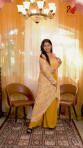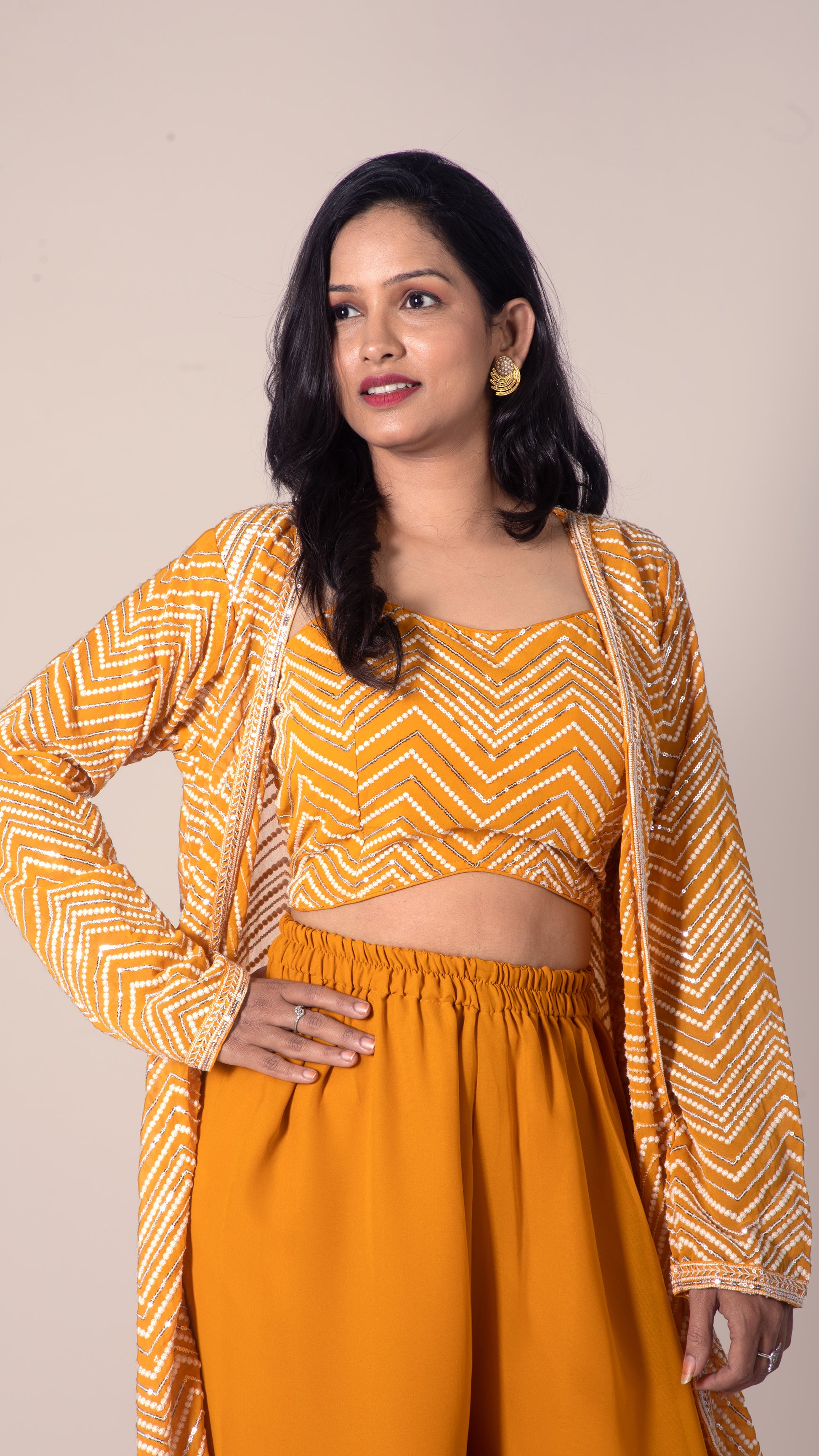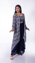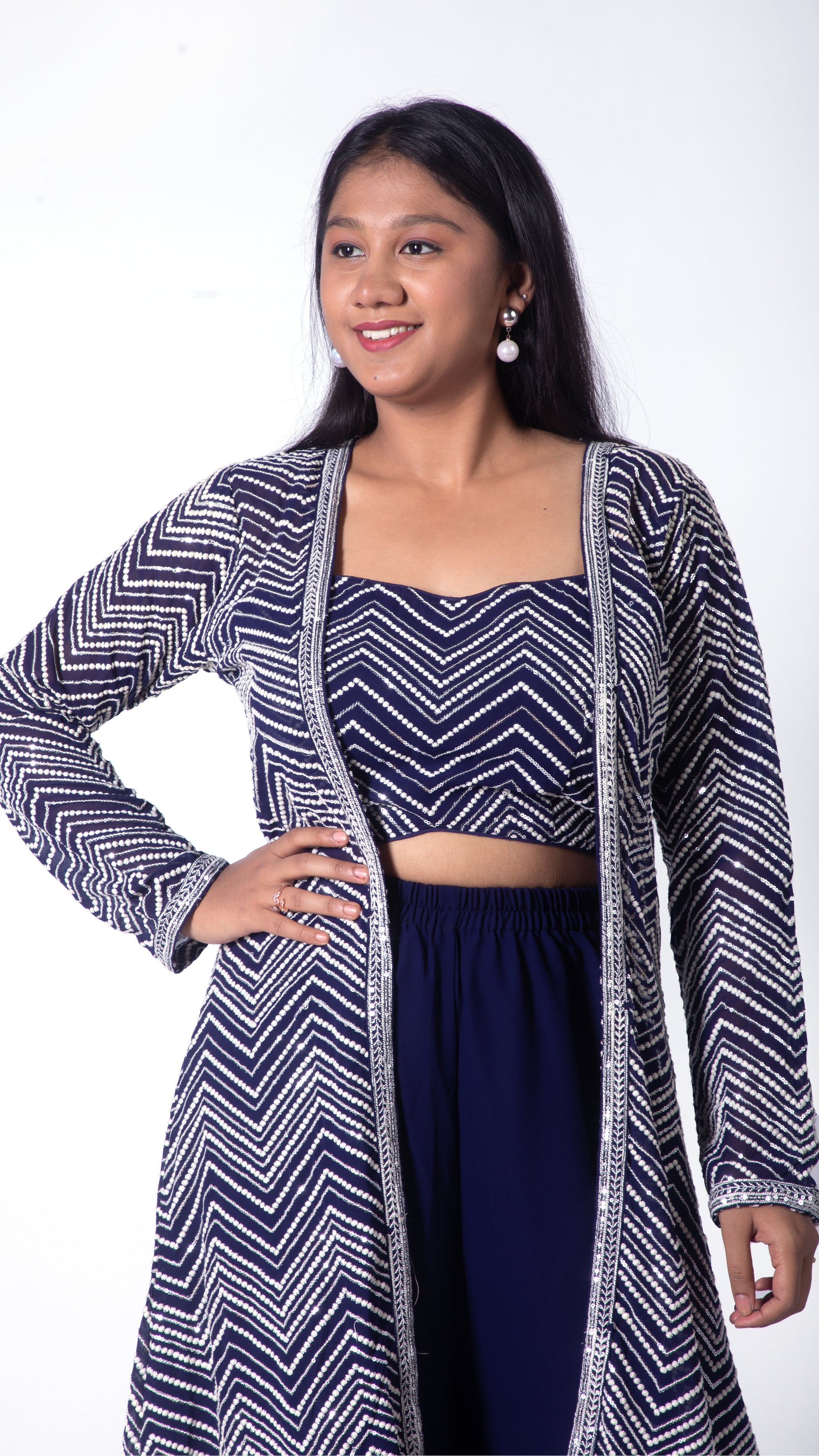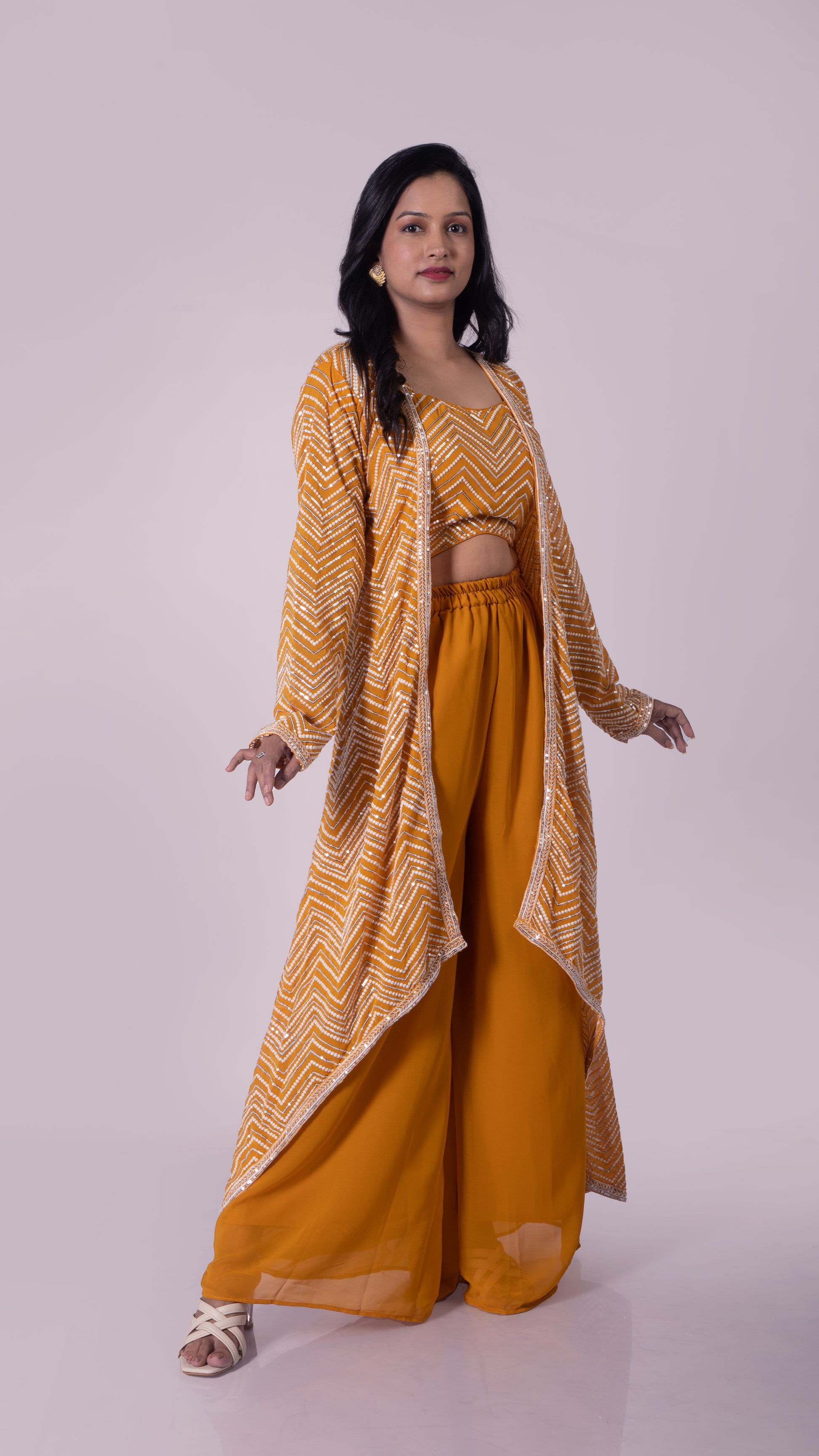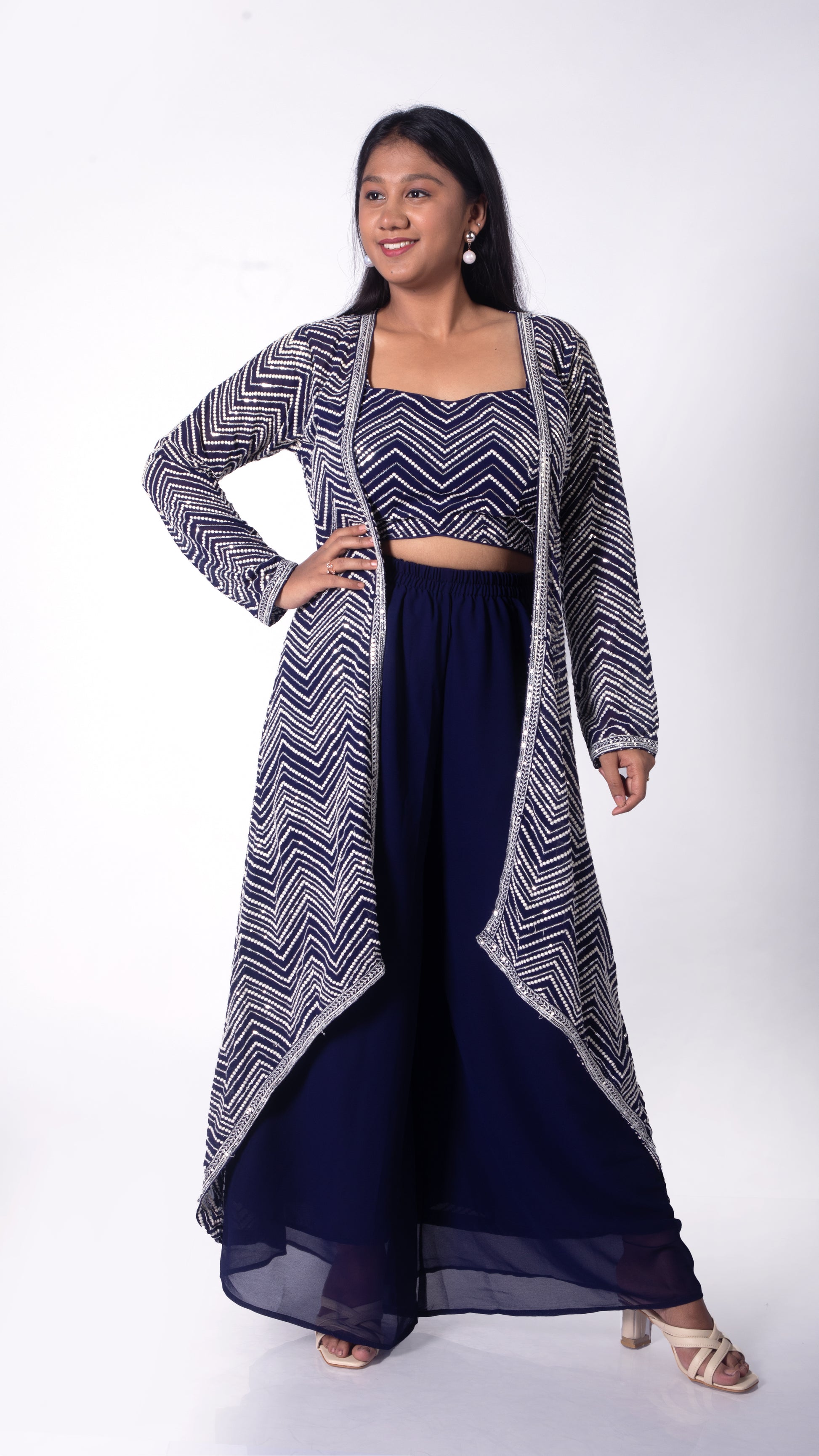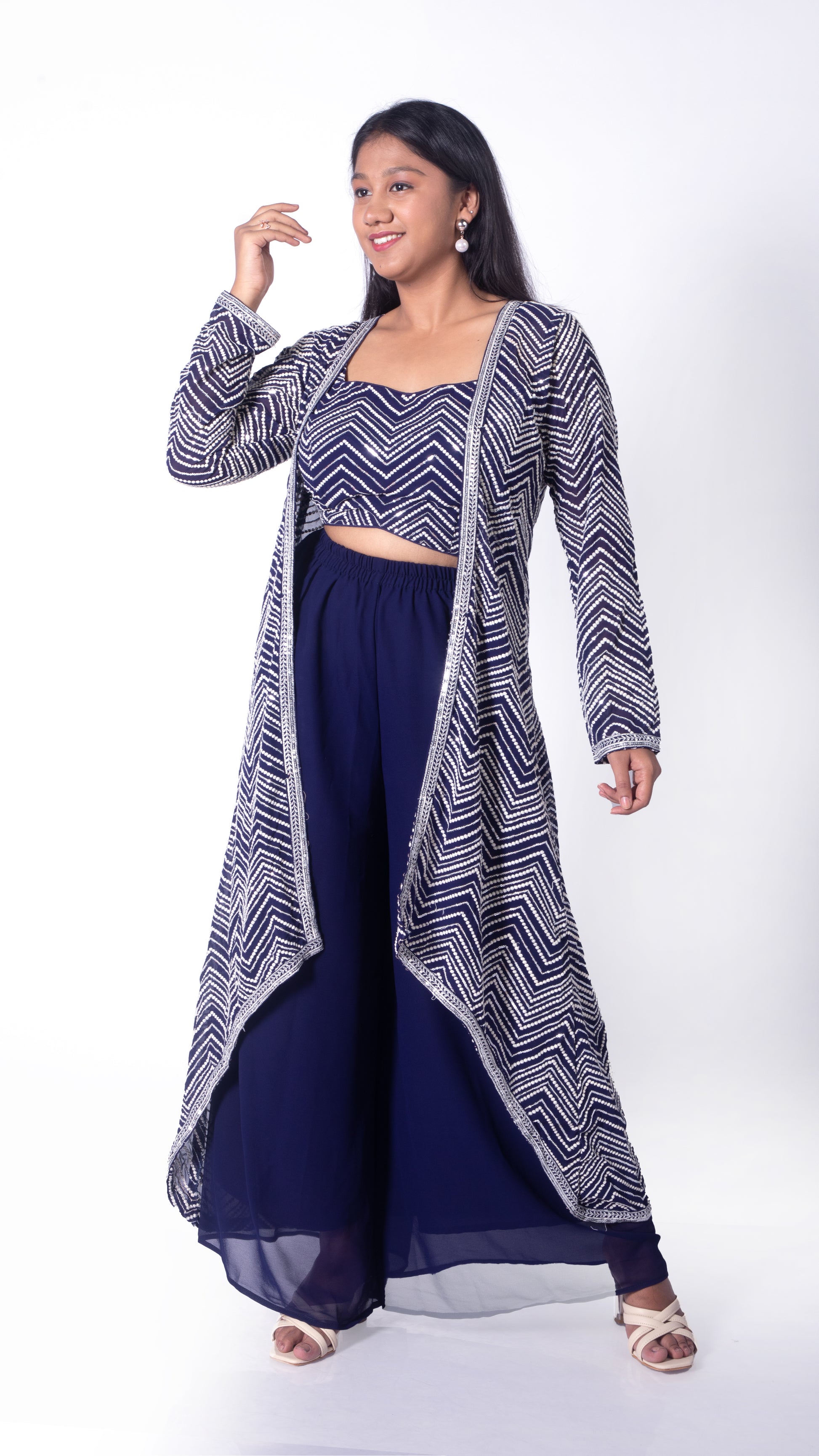 Sequined Thread Work Top and Palazzo with Long Jacket
