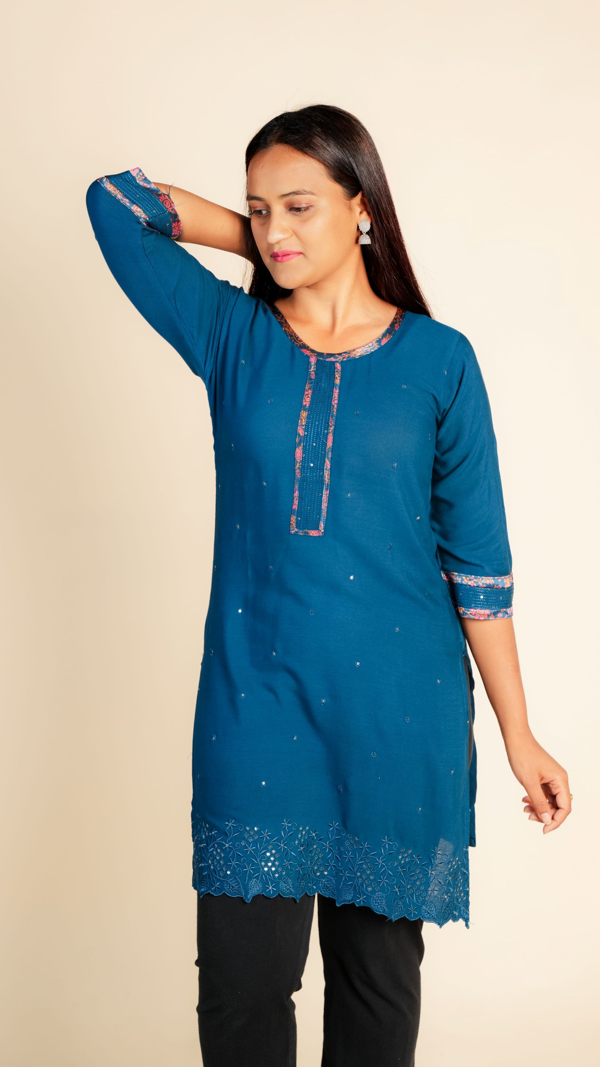 Shikha Short Kurti combines traditional elegance with modern style. Crafted for comfort and versatility, it’s perfect for casual outings or festive occasions, enhancing your wardrobe with effortless grace.
