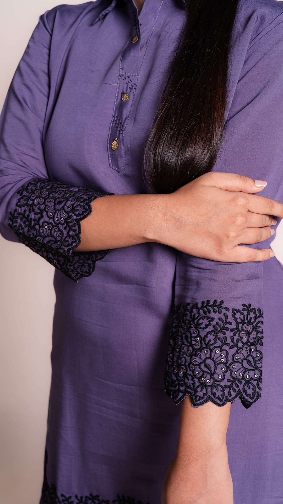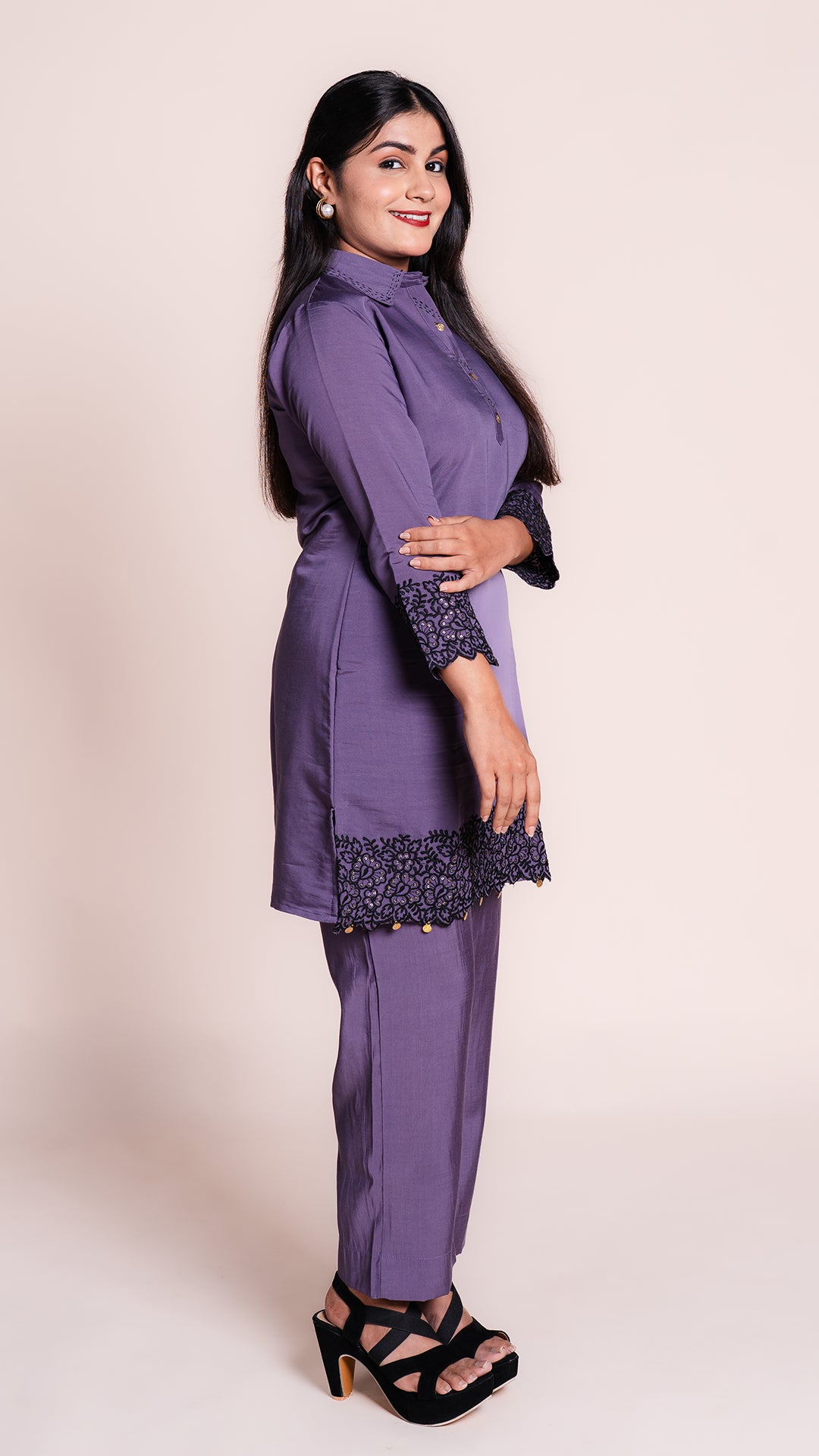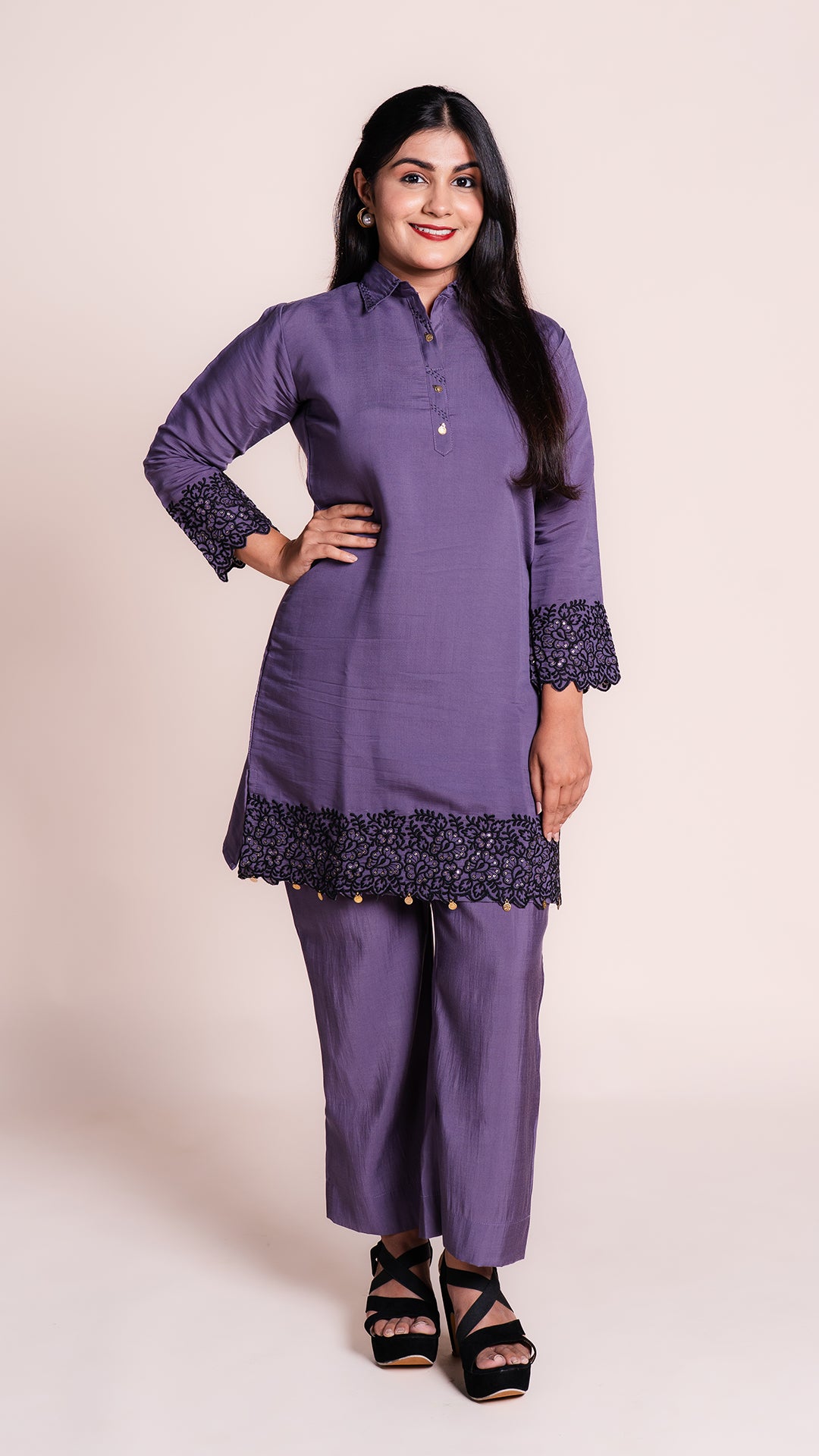 This elegant Simple Co-ord Set features a beautifully embroidered Kurti, creating a timeless and versatile look. The intricate embroidery adds a touch of sophistication to any outfit, making it a perfect addition to your wardrobe. Stay stylish and comfortable with this must-have set.
