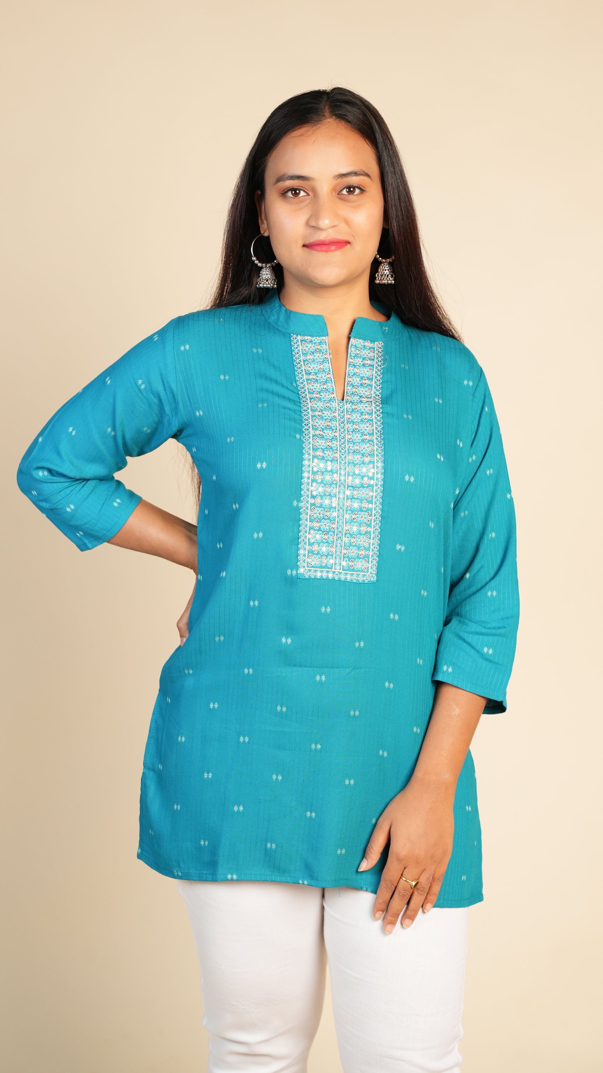 Elevate your wardrobe with the timeless elegance of the StylishCotton Kurti. Made from soft, breathable cotton, this short kurti offers comfort and style in one. With 7 stunning colors to choose from, it’s perfect for any occasion, whether casual or festive. Its flattering fit and versatile design make it a must-have for modern women. Available in vibrant shades to match every mood and season. Add a touch of sophistication and ease to your outfit today!