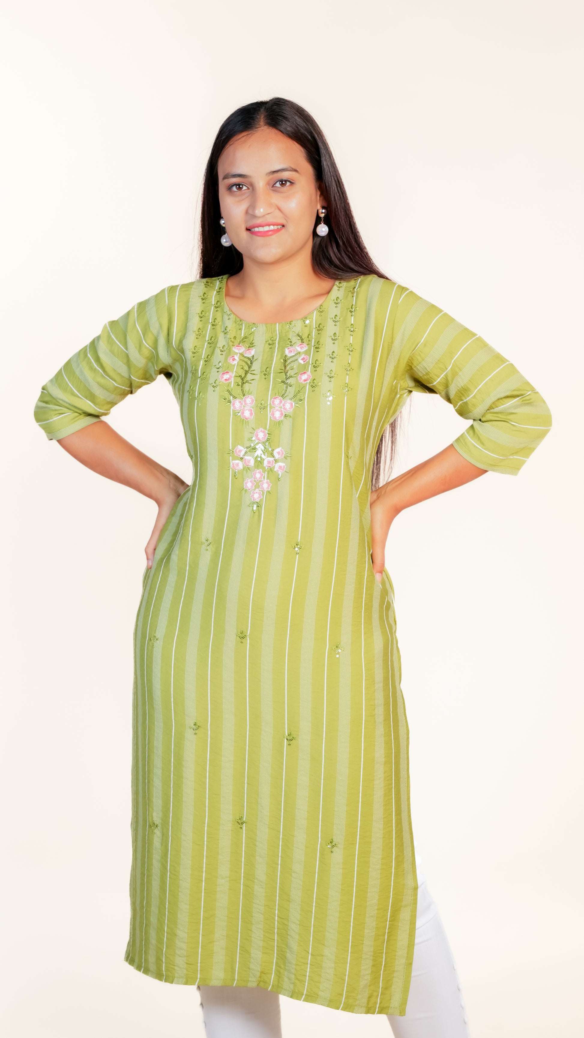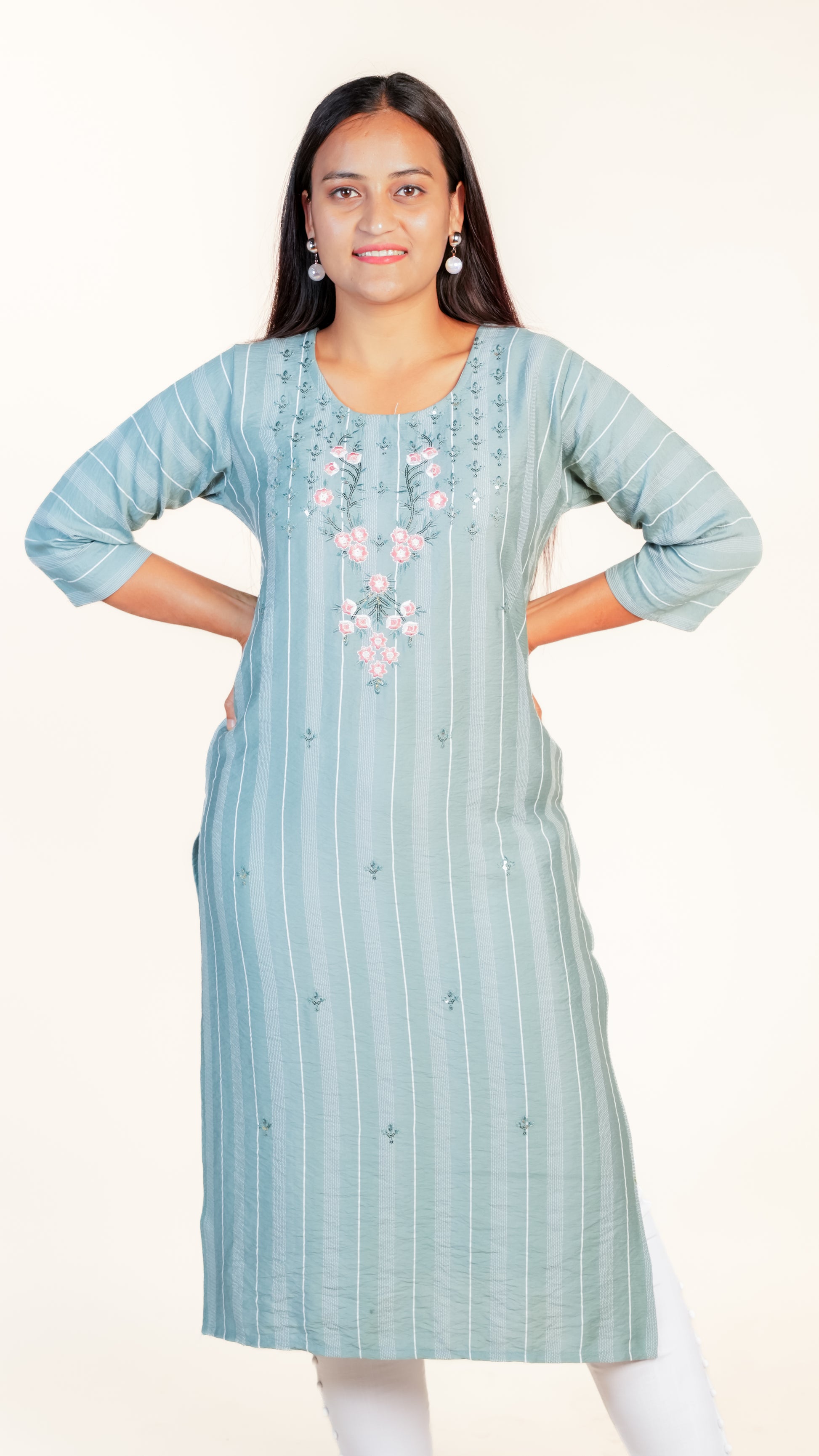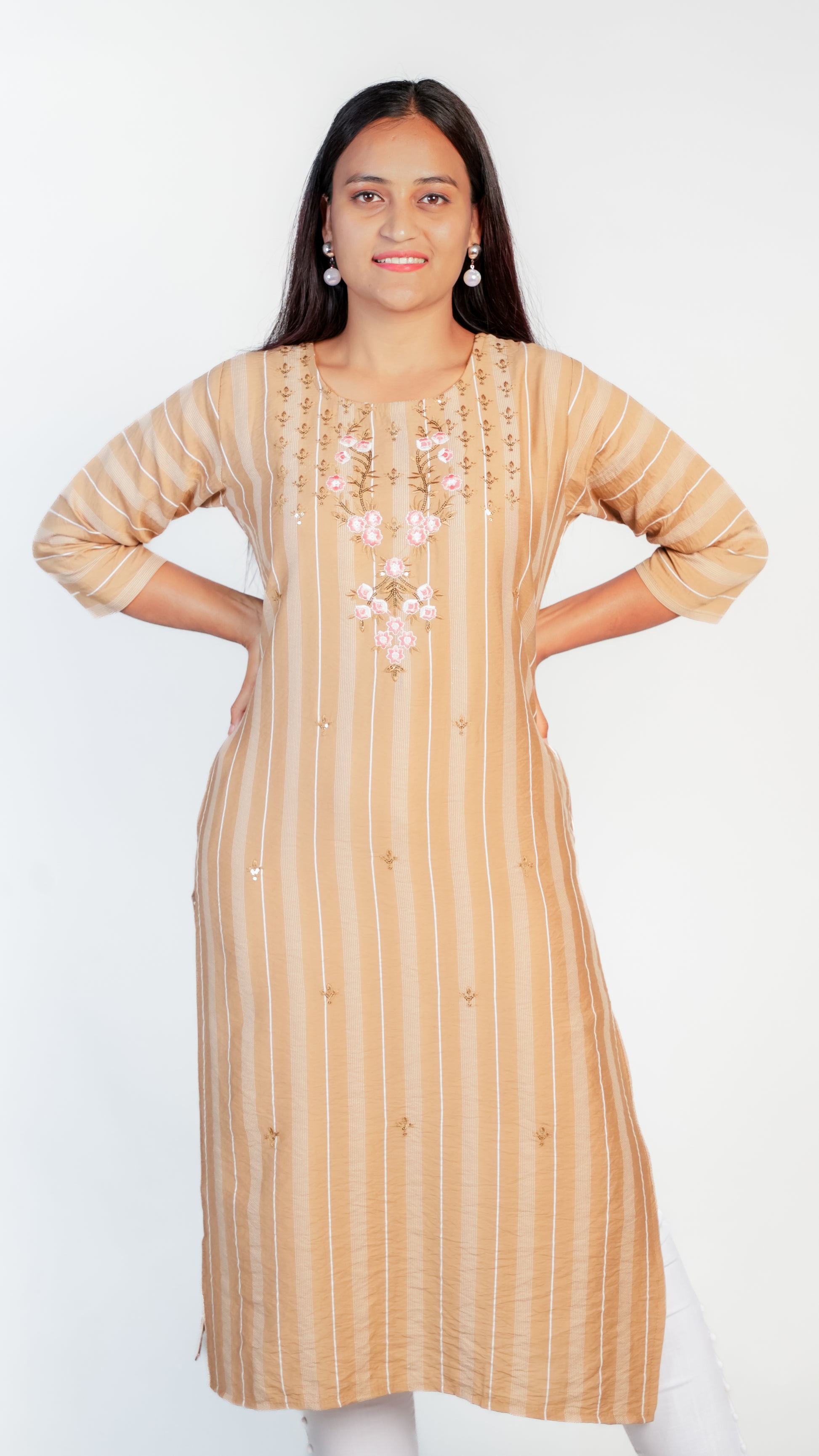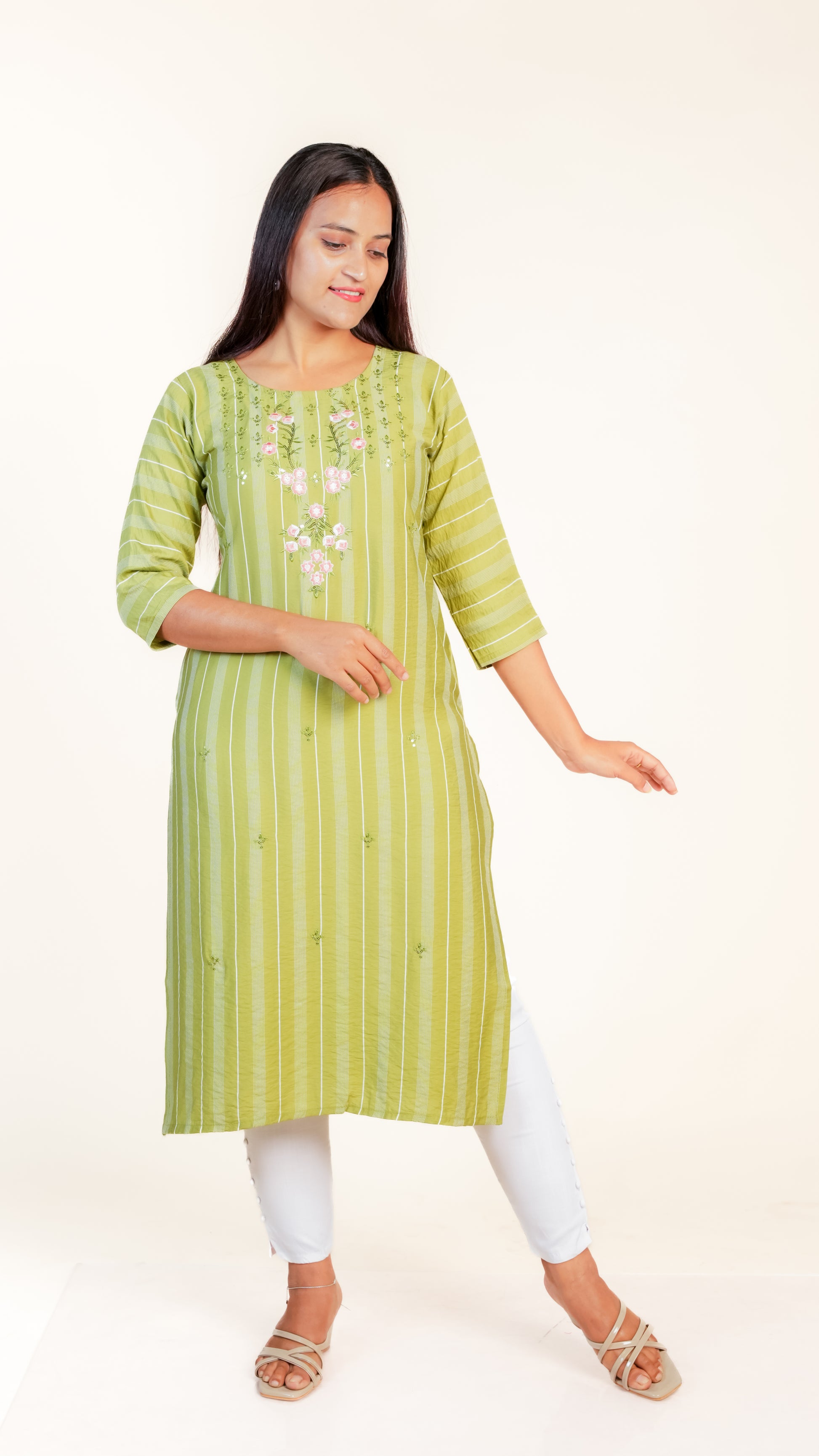 Floral Line Kurta showcases refined elegance with its delicate floral patterns and comfortable fit. Crafted to offer both style and ease of wear, it is ideal for casual or semi-formal occasions. This kurta blends traditional design with contemporary appeal, making it a versatile addition to any wardrobe.