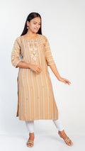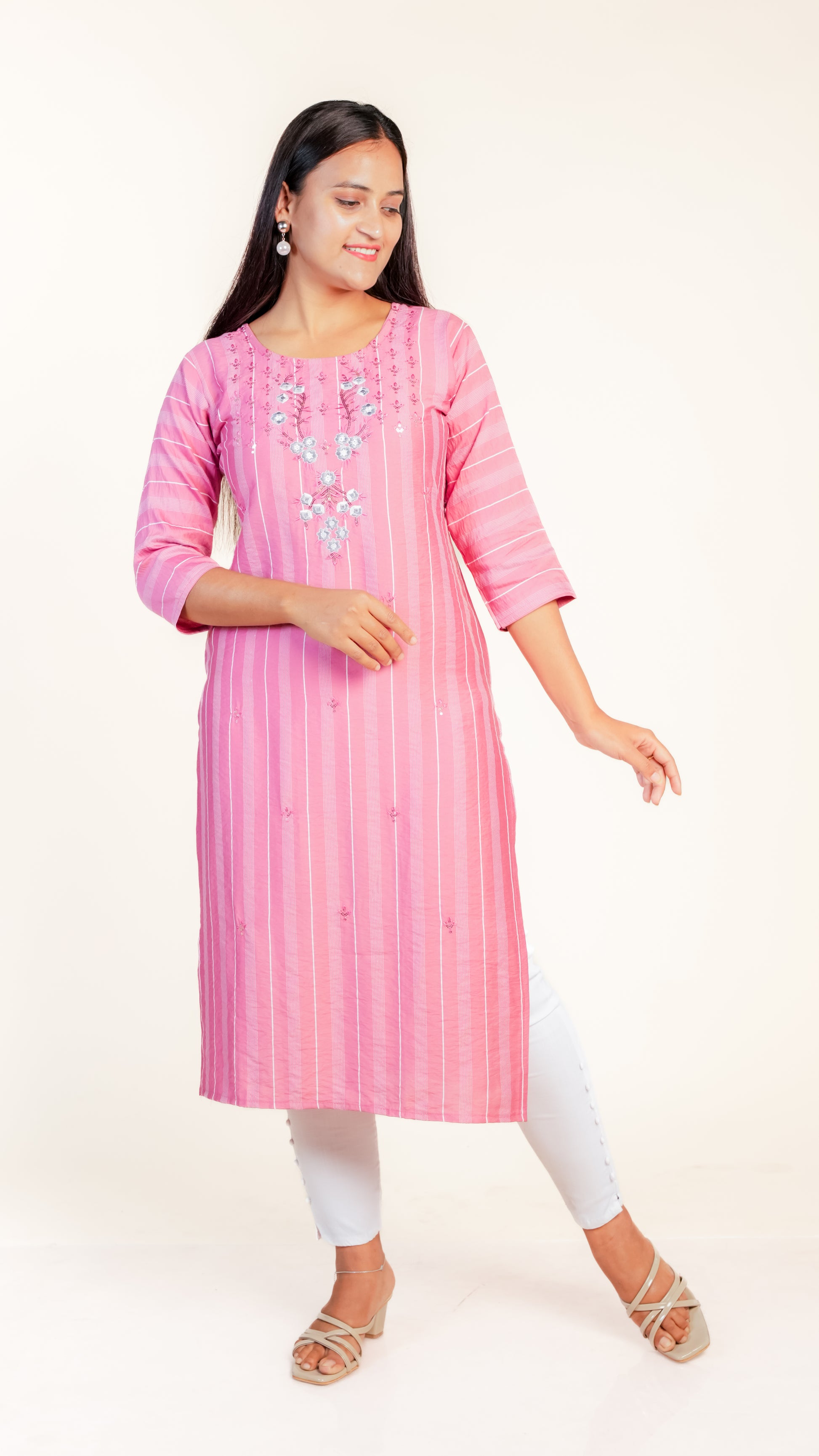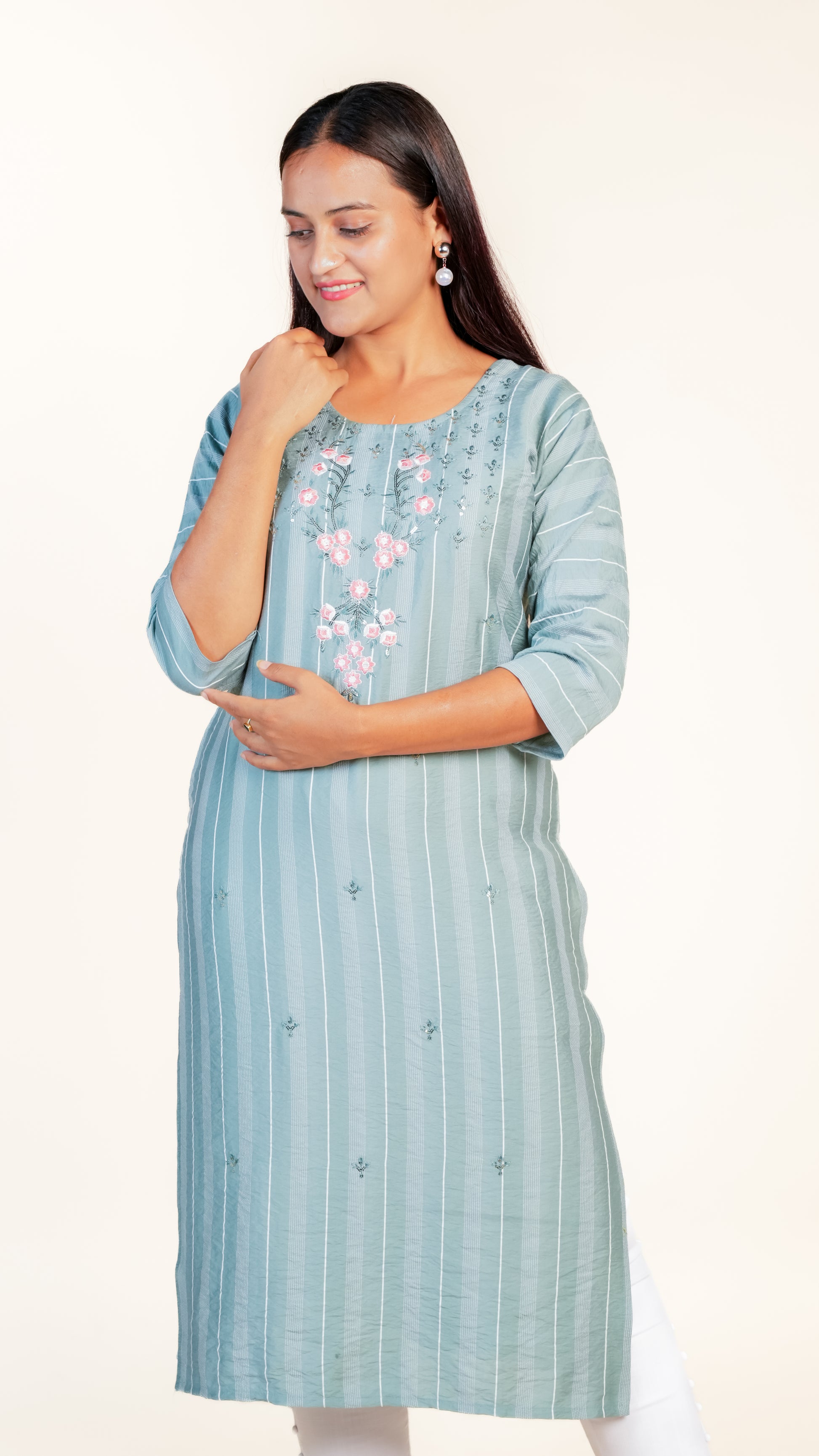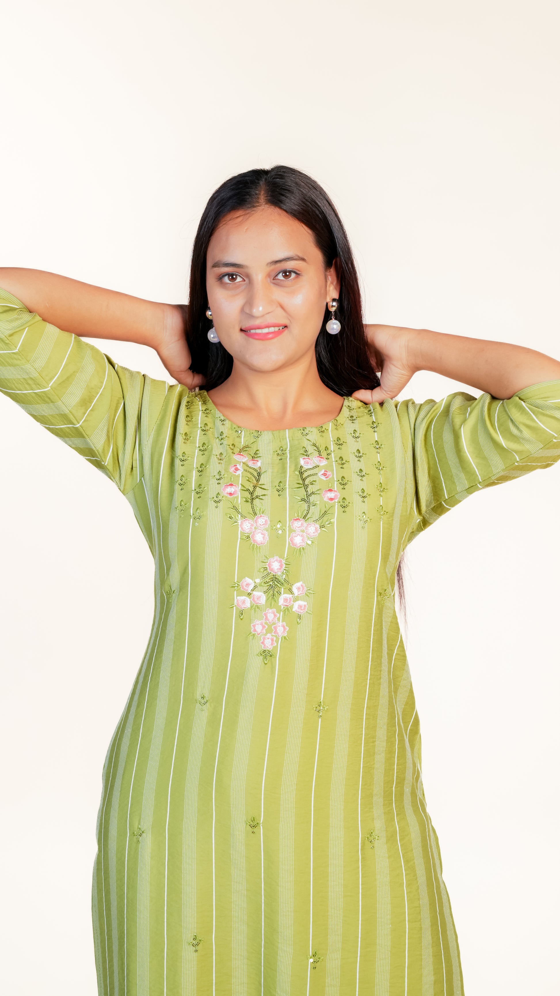 Floral Line Kurta showcases refined elegance with its delicate floral patterns and comfortable fit. Crafted to offer both style and ease of wear, it is ideal for casual or semi-formal occasions. This kurta blends traditional design with contemporary appeal, making it a versatile addition to any wardrobe.
