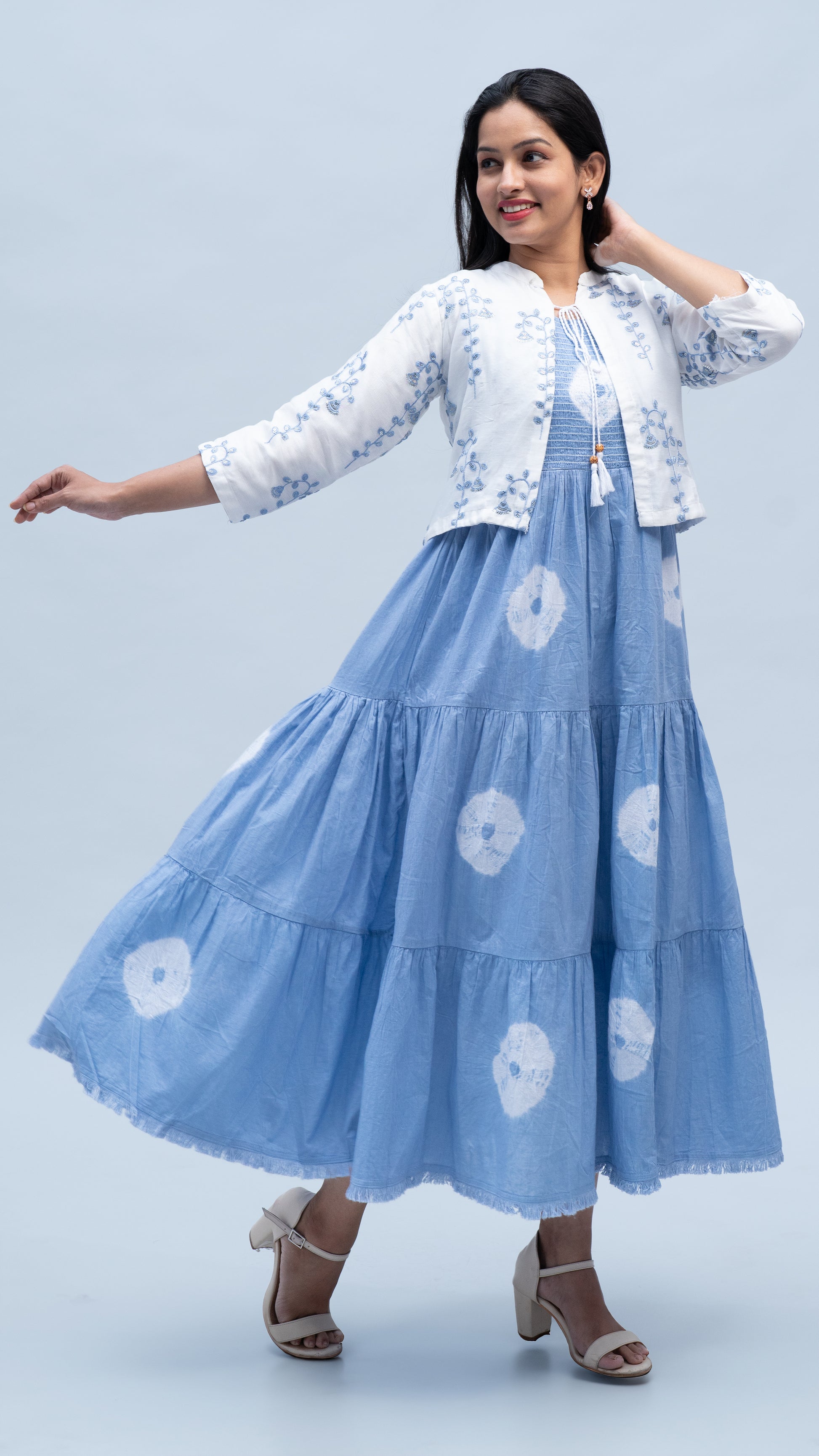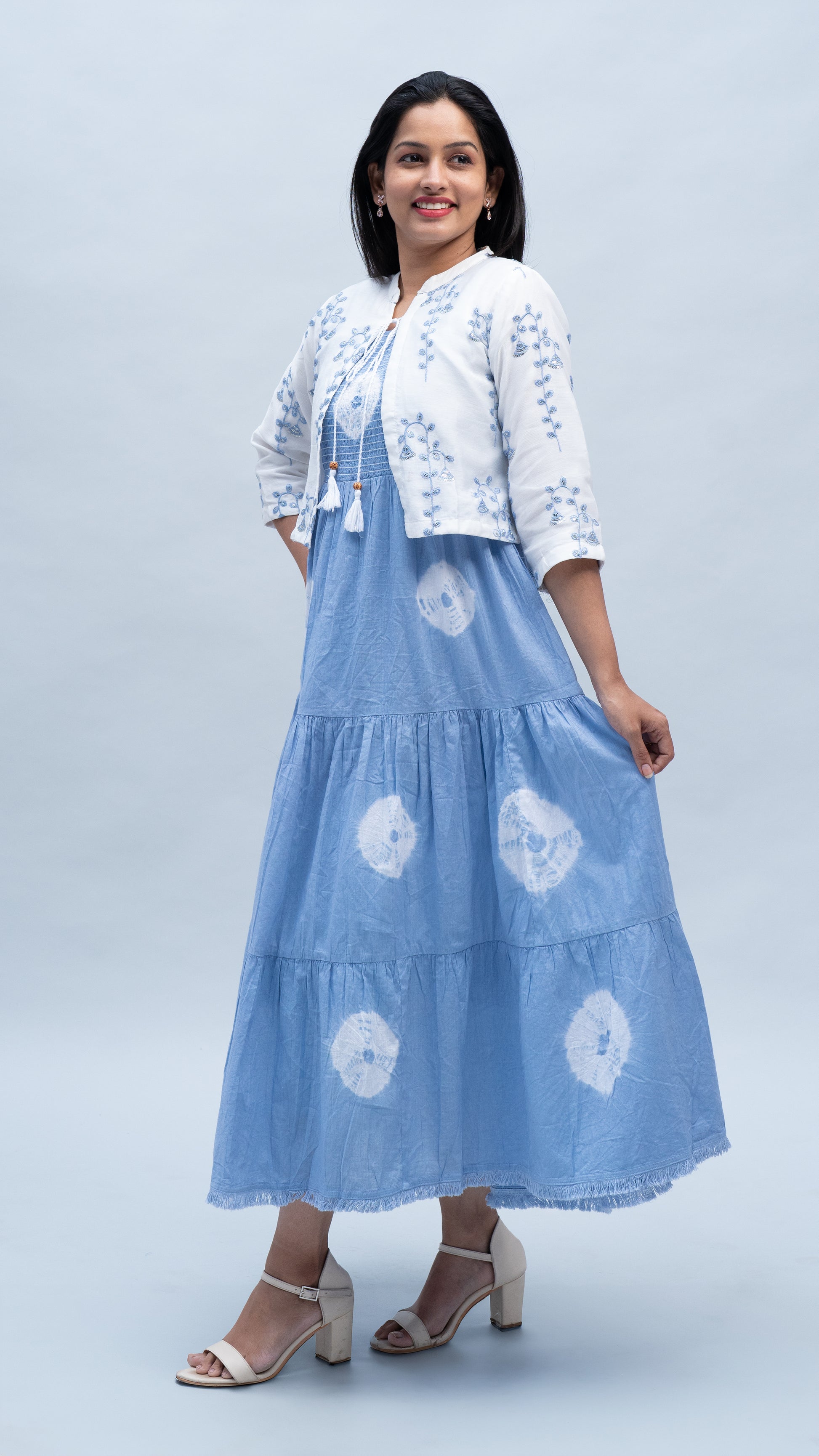The Tie Dye Maxi Dress with Cropped Jacket is a bold and stylish statement piece for any occasion. The flowing maxi dress features a vibrant tie-dye pattern that adds a pop of color and personality, while the flattering silhouette enhances your figure. Paired with a chic cropped jacket, this set offers both comfort and style, perfect for layering on cooler evenings or adding a touch of sophistication to your look. Whether you're dressing up for a night out or keeping it casual, this versatile set is a must-have for your wardrobe