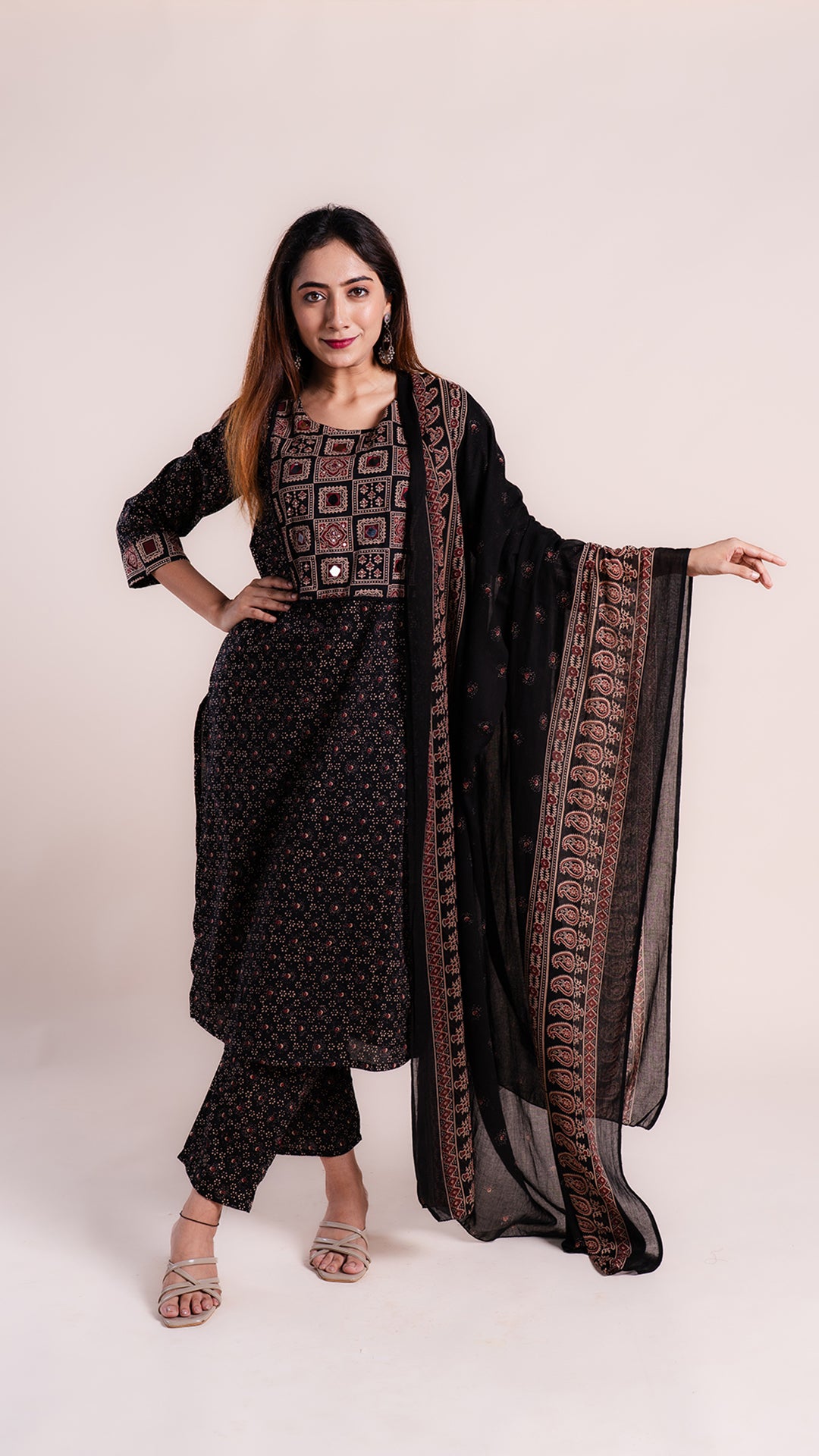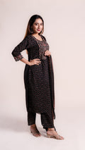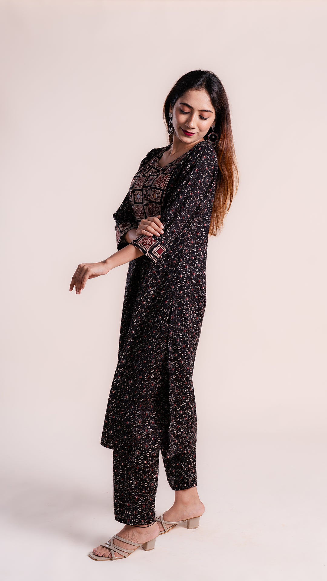 Elevate your formal attire with our Twilight Suit Set, featuring a sophisticated black printed design. Meticulously tailored for an impeccable fit, this ensemble combines classic elegance with contemporary styling. The premium fabric ensures comfort during extended wear while maintaining a crisp, professional appearance throughout the day.