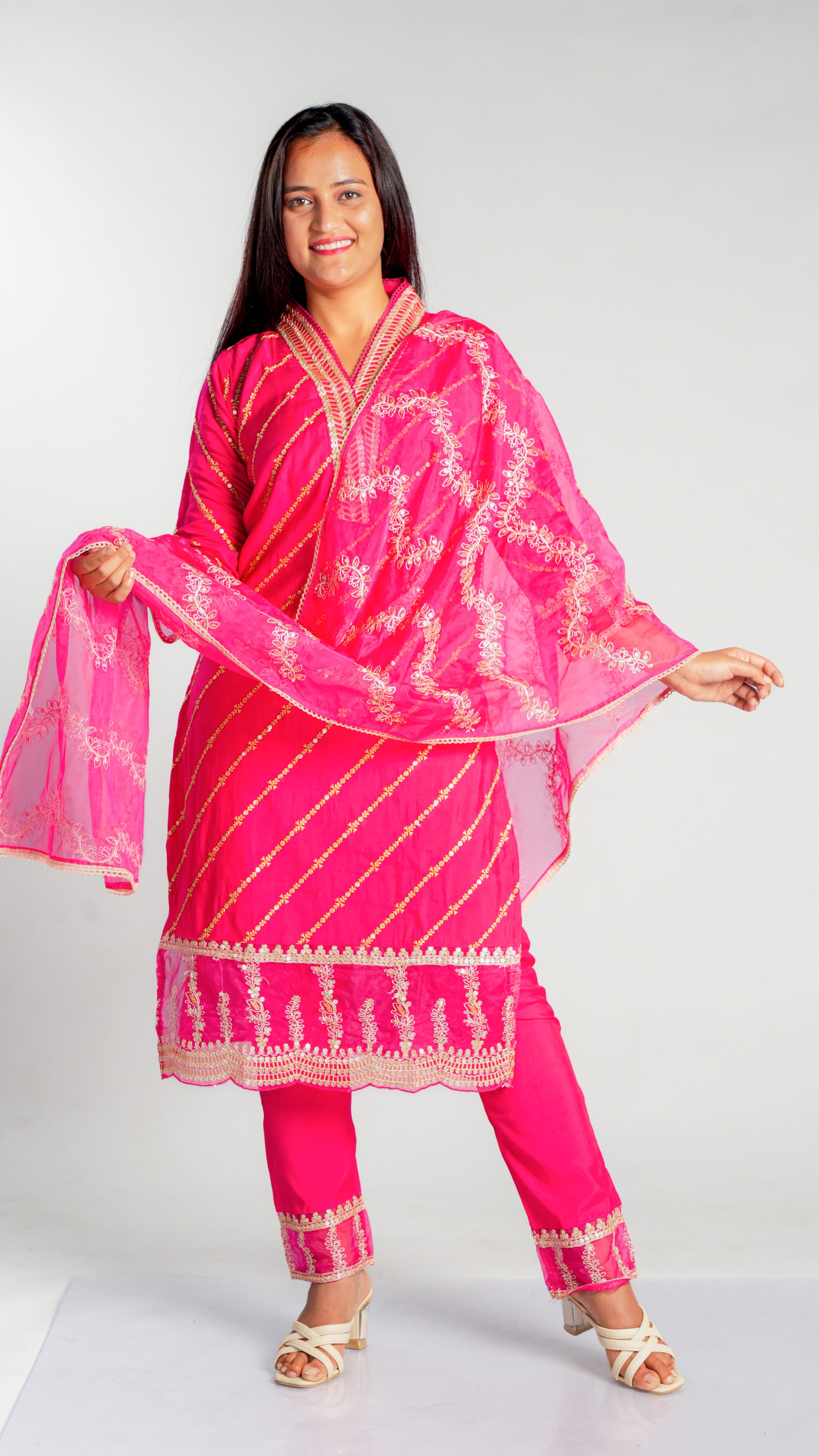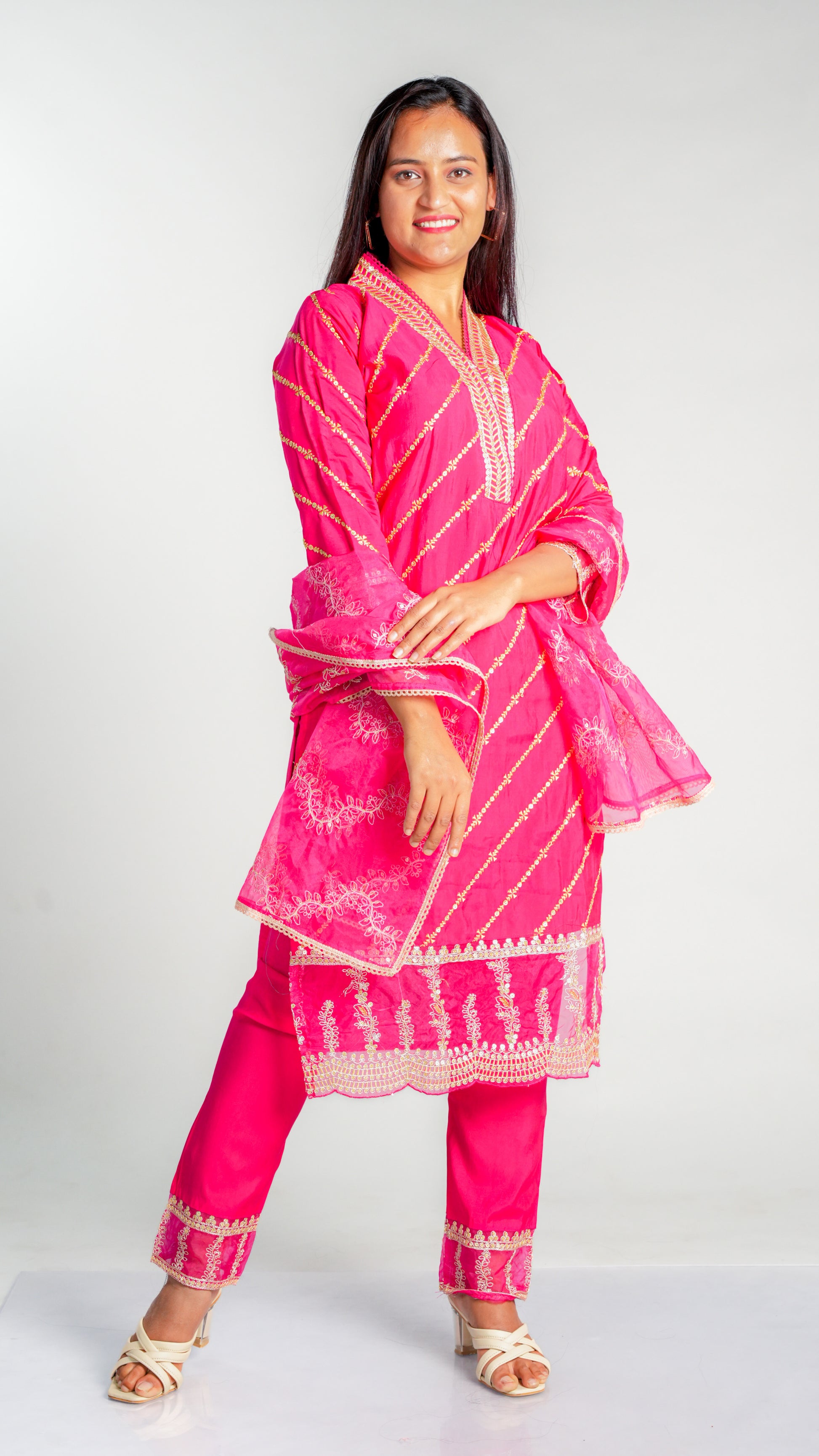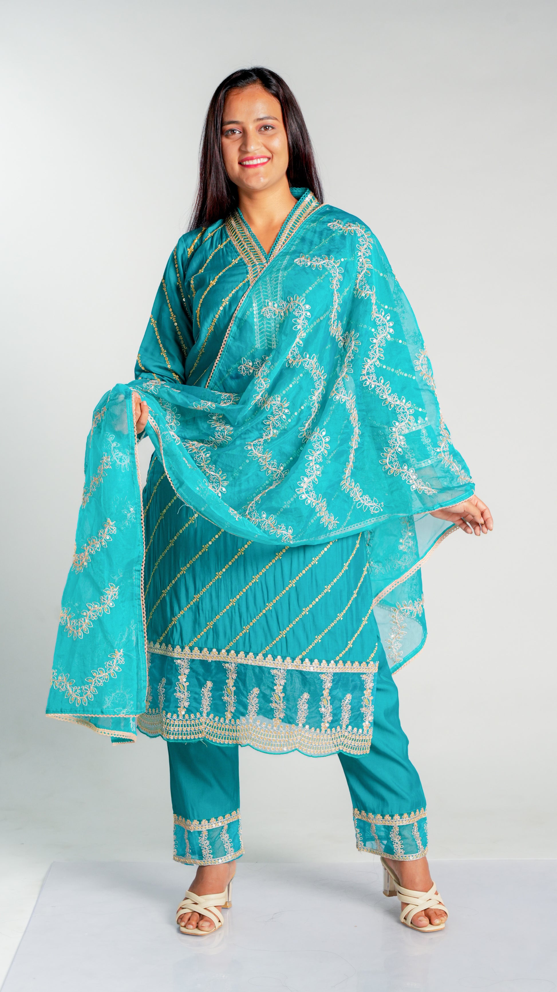 Elevate your style with our Padmika Suit Set. Crafted from a luxurious Georgette Blend, this suit set features exquisite thread work for a sophisticated look. Complete the ensemble with our beautifully crafted dupatta for a touch of elegance. Perfect for any occasion, this suit set will surely make a statement.
