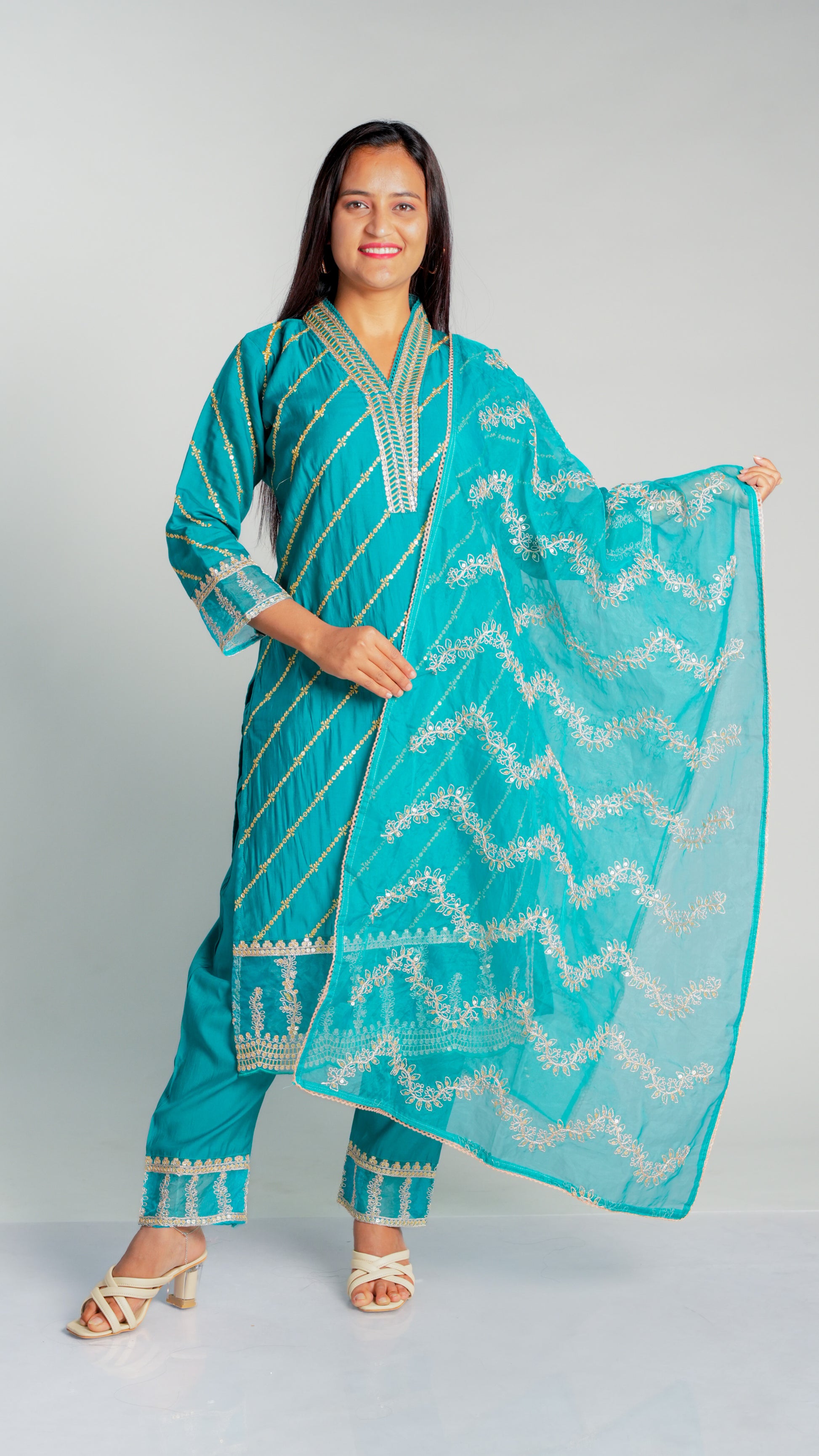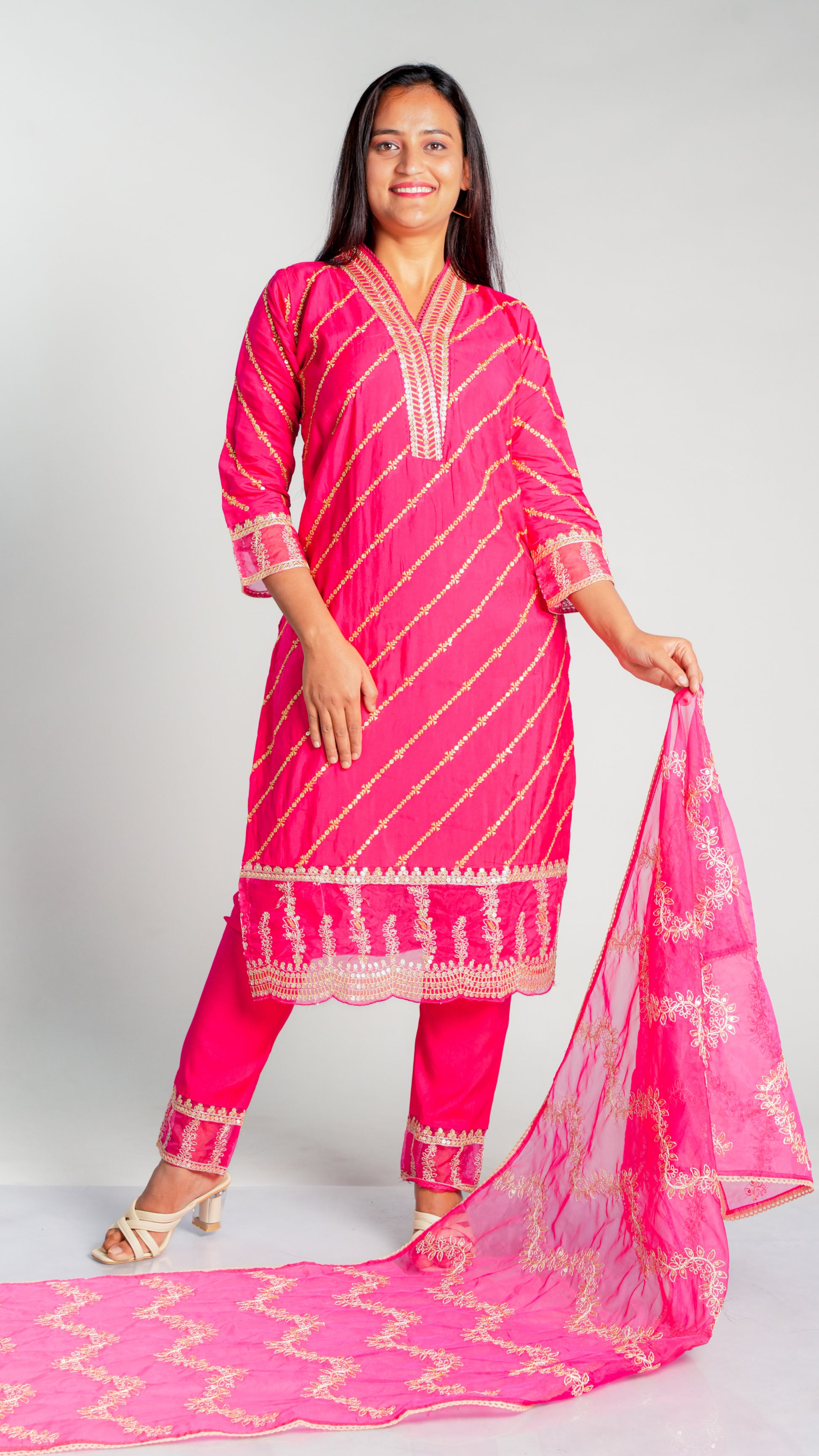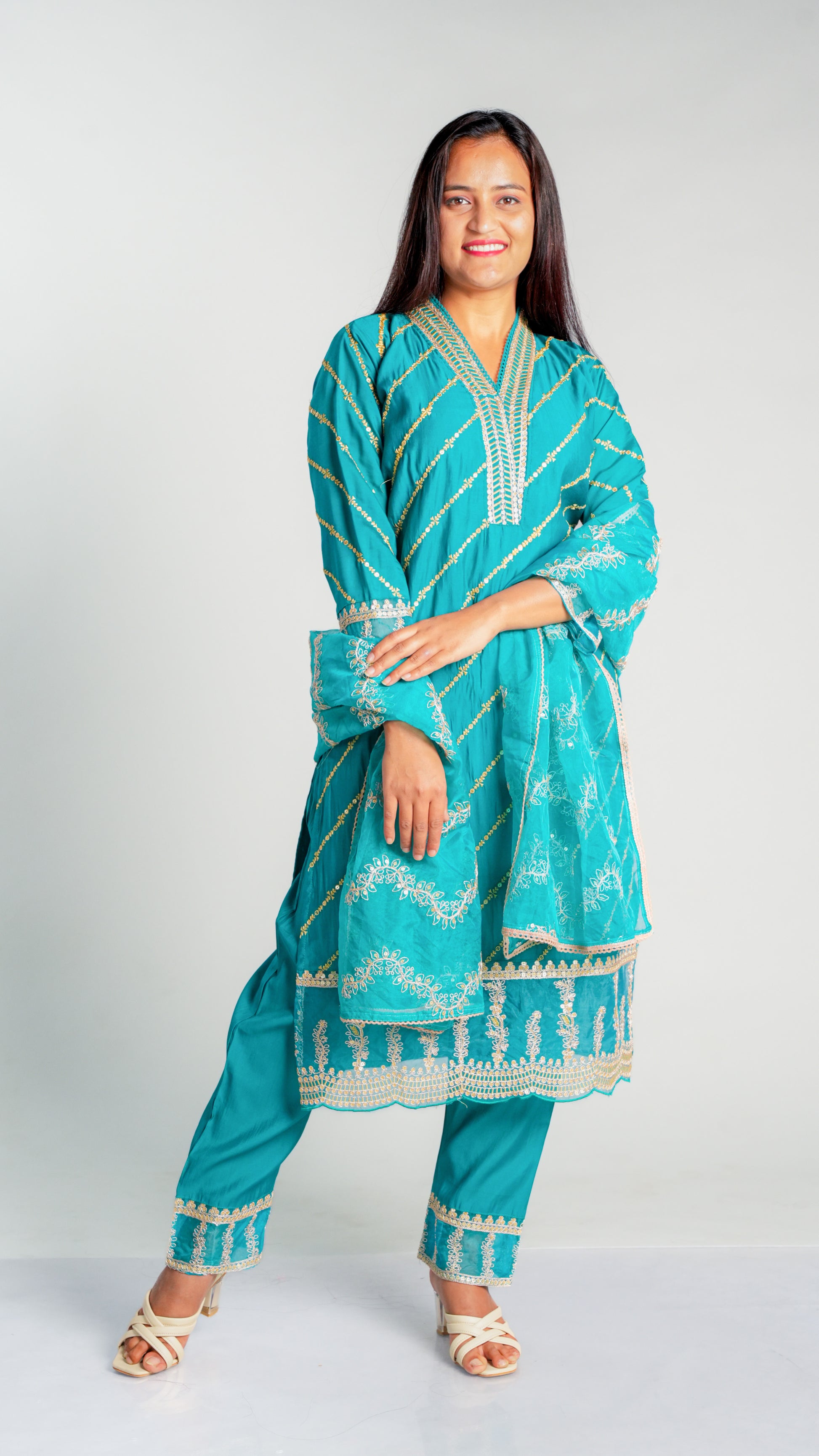 Elevate your style with our Padmika Suit Set. Crafted from a luxurious Georgette Blend, this suit set features exquisite thread work for a sophisticated look. Complete the ensemble with our beautifully crafted dupatta for a touch of elegance. Perfect for any occasion, this suit set will surely make a statement.