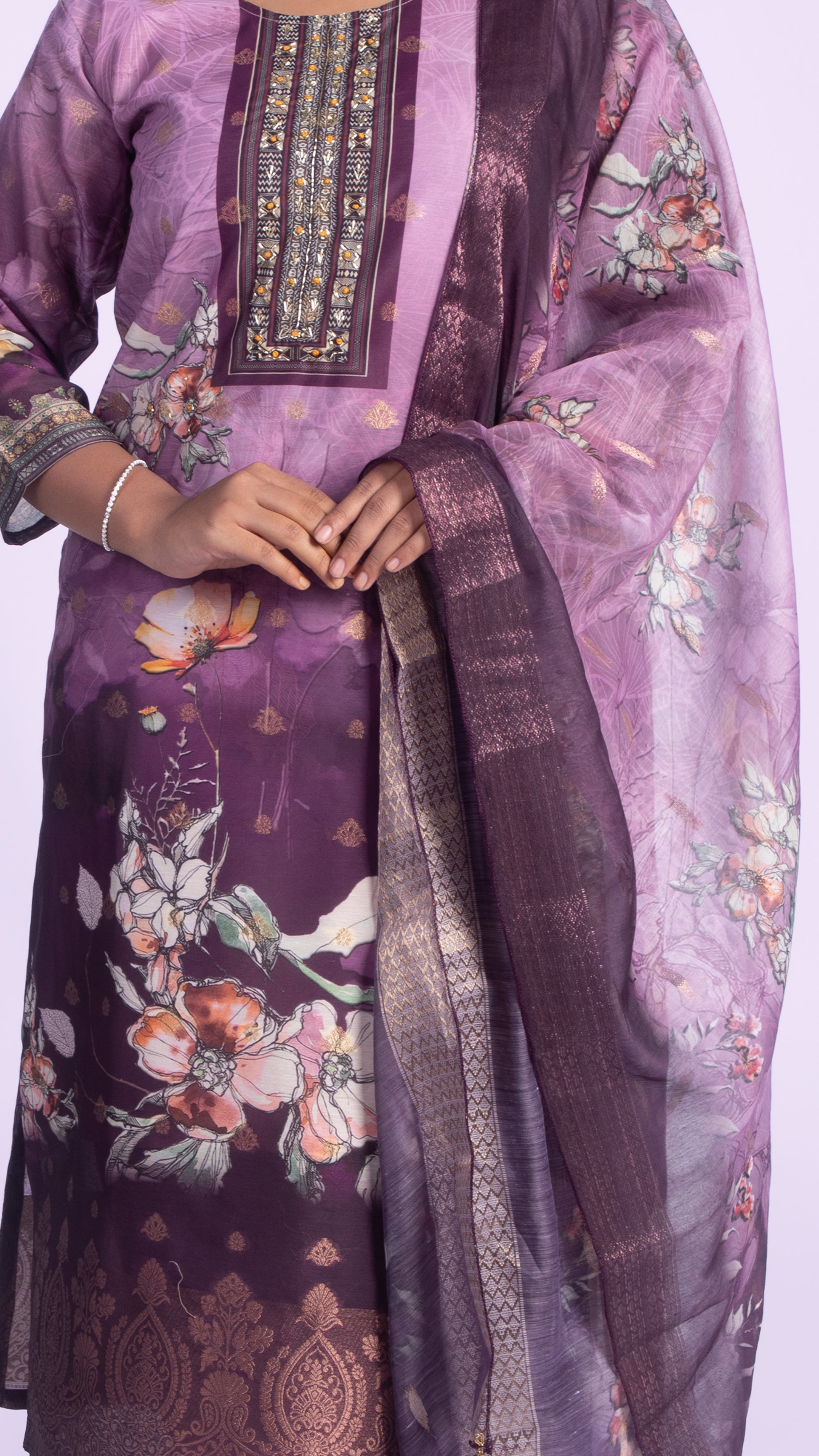 Introducing our Hiva Suit Set, a tribute to the rich and opulent Banarasi tradition. This set boasts intricate heavy work, adding an elegant touch to any occasion. Made with the finest quality materials, our suit set offers both style and comfort. Elevate your wardrobe with this timeless piece.