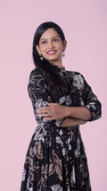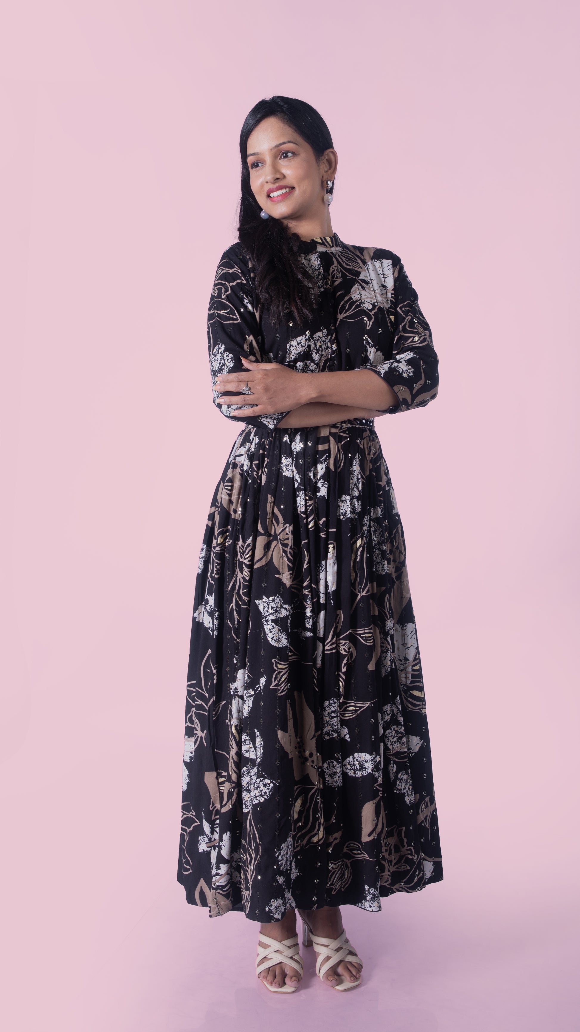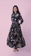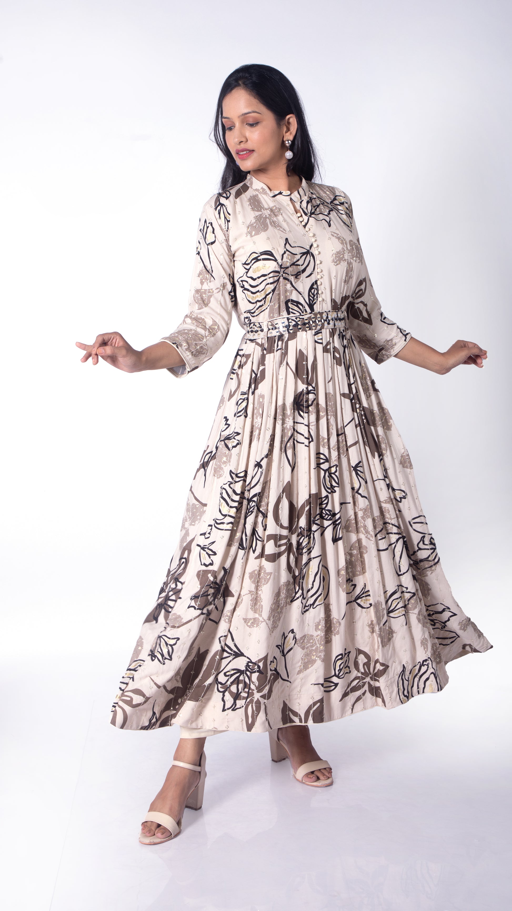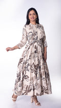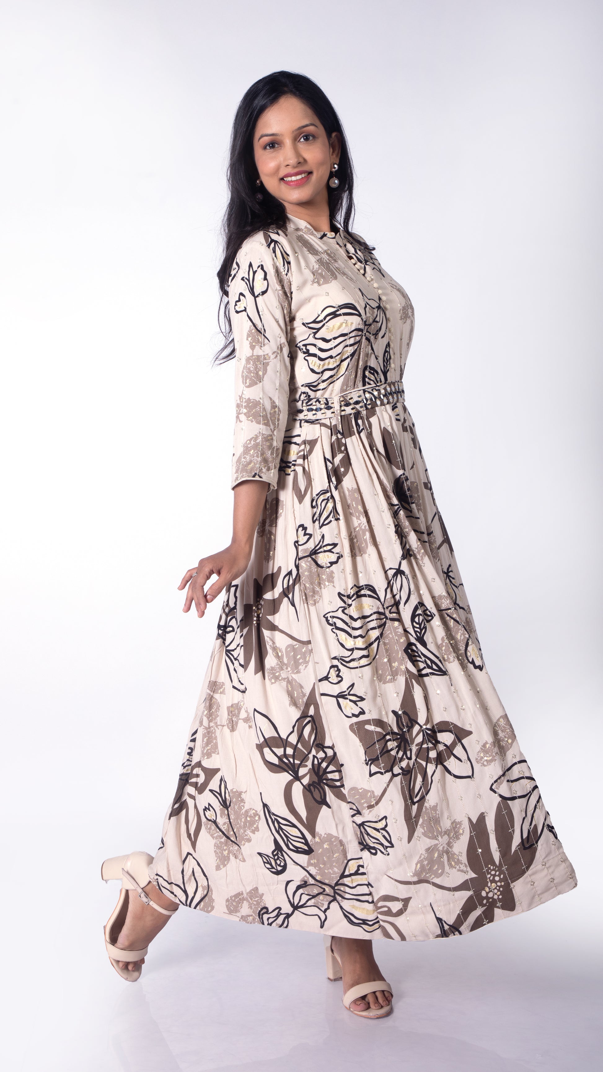 Heavy Floral Print Maxi Dress with Detachable Belt